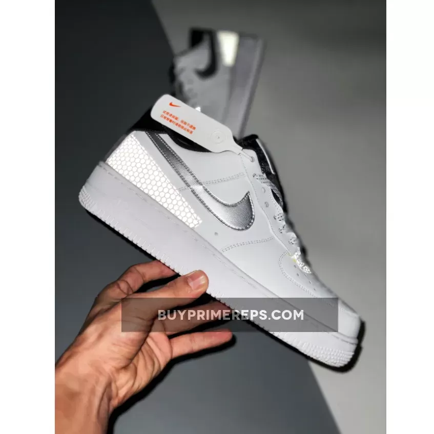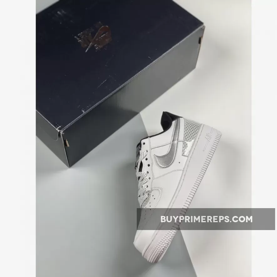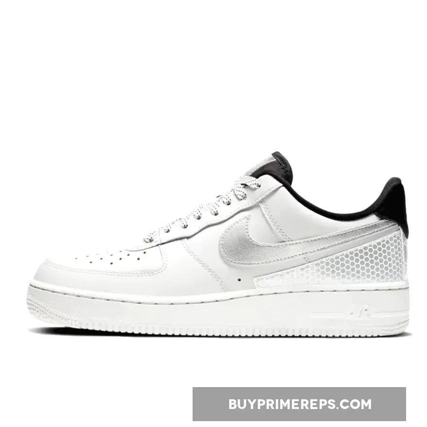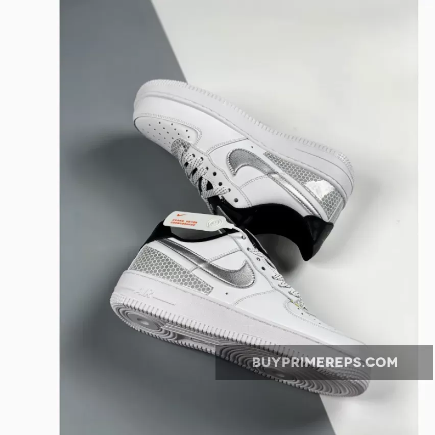 The 3M x Nike Air Force 1 07 LV8 Summit White is part of a pack that showcases metallic silver Swooshes and signature 3M details. The upper of the shoe is constructed from a combination of smooth and tumbled leather, giving it a premium look and feel. The white colorway provides a clean and versatile aesthetic, making it easy to style with any outfit.