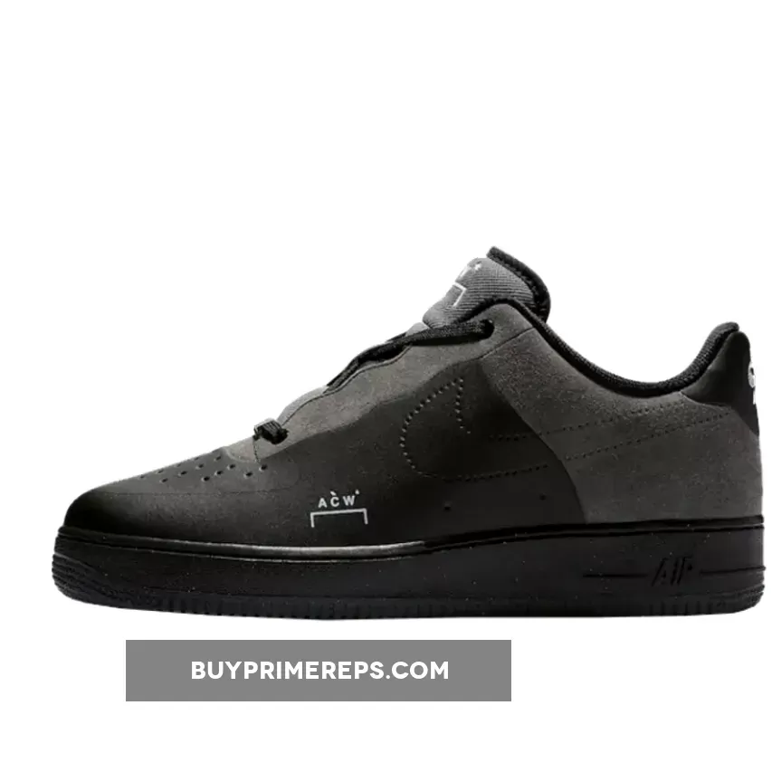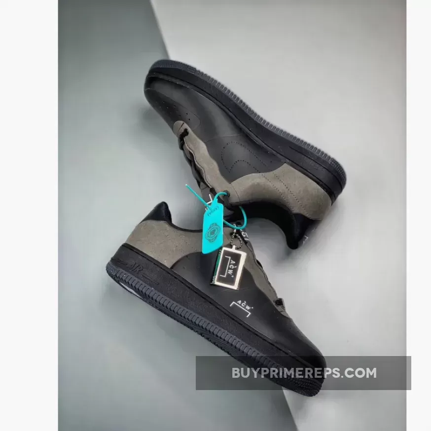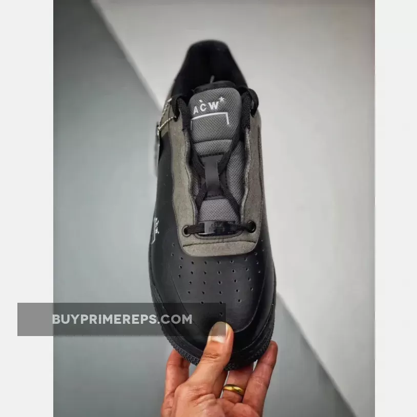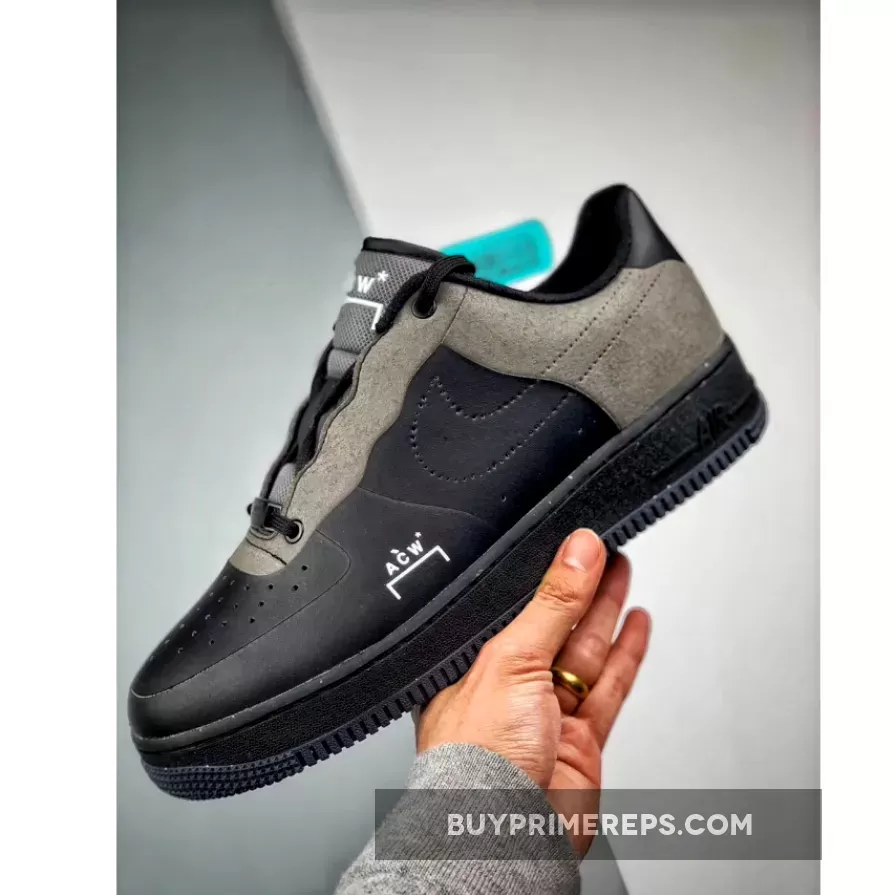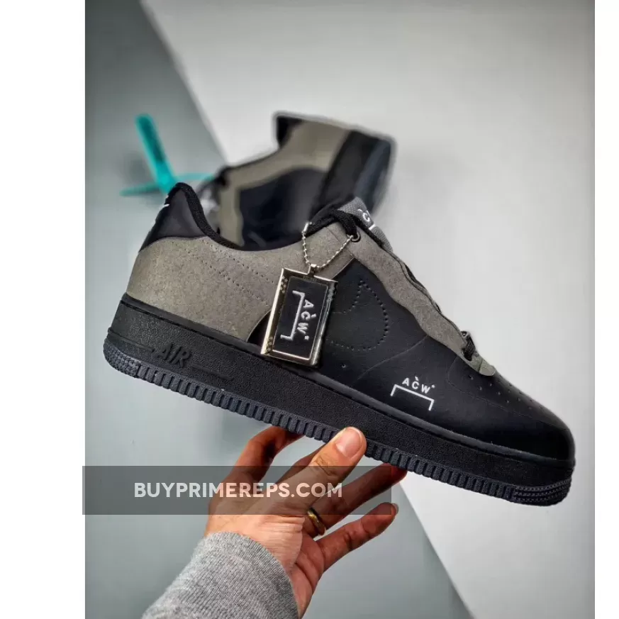 The design of the A COLD WALL x Nike Air Force 1 Low Black is sleek and understated. The upper features panels of grey nubuck, adding a subtle contrast to the black base. The iconic Swoosh branding is replaced with perforated detailing, giving the shoe a more minimalistic look. The ACW branding is prominently displayed at the mid-foot and tongue, showcasing the collaboration between the two brands.