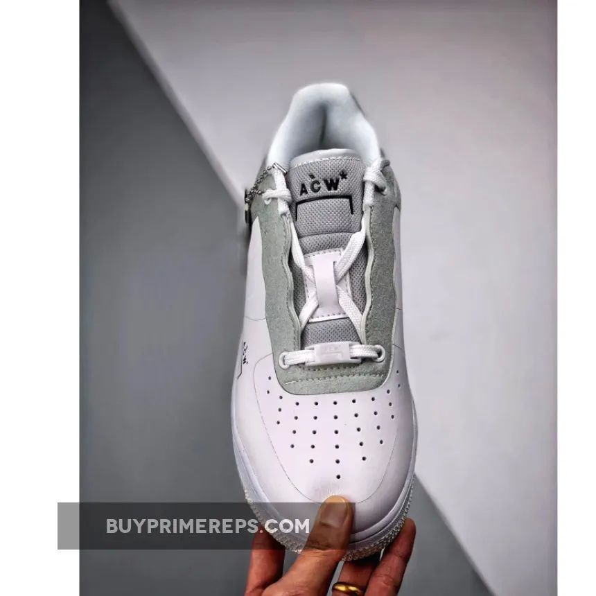 The upper of the A COLD WALL x Nike Air Force 1 Low White features a combination of white nubuck and smooth leather, giving it a clean and refined look. The perforated Swoosh branding adds a touch of texture and depth to the design. On the mid-foot and tongue, you’ll find ACW branding, showcasing the collaboration between A COLD WALL and Nike.