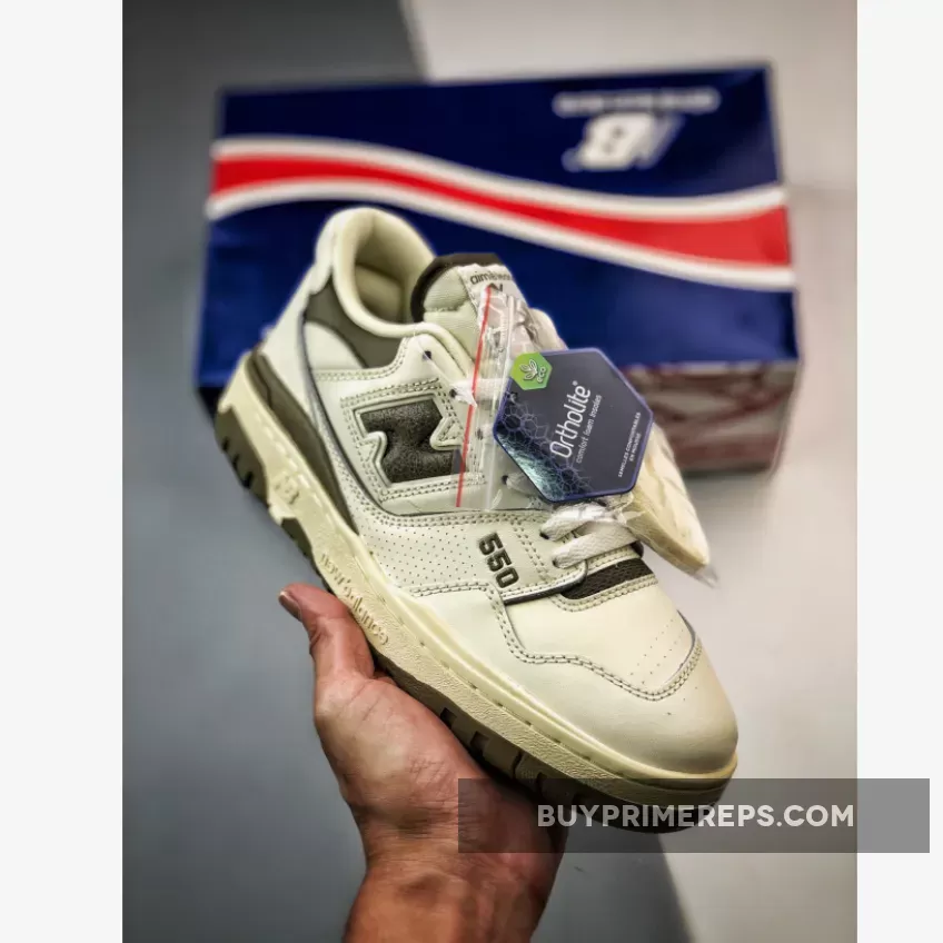 The Aimé Leon Dore x New Balance 550 ‘Olive’ is a collaboration that celebrates the classic silhouette of the 550 with the unique style of Aimé Leon Dore. This two-tone sneaker features a timeless white leather upper adorned with contrasting olive green accents. The co-branded tongue tag, cracked leather ‘N’ logo, and mismatched heel branding add playful details that capture the late ’80s inspiration.