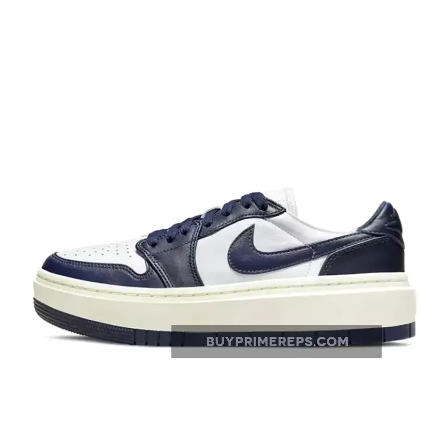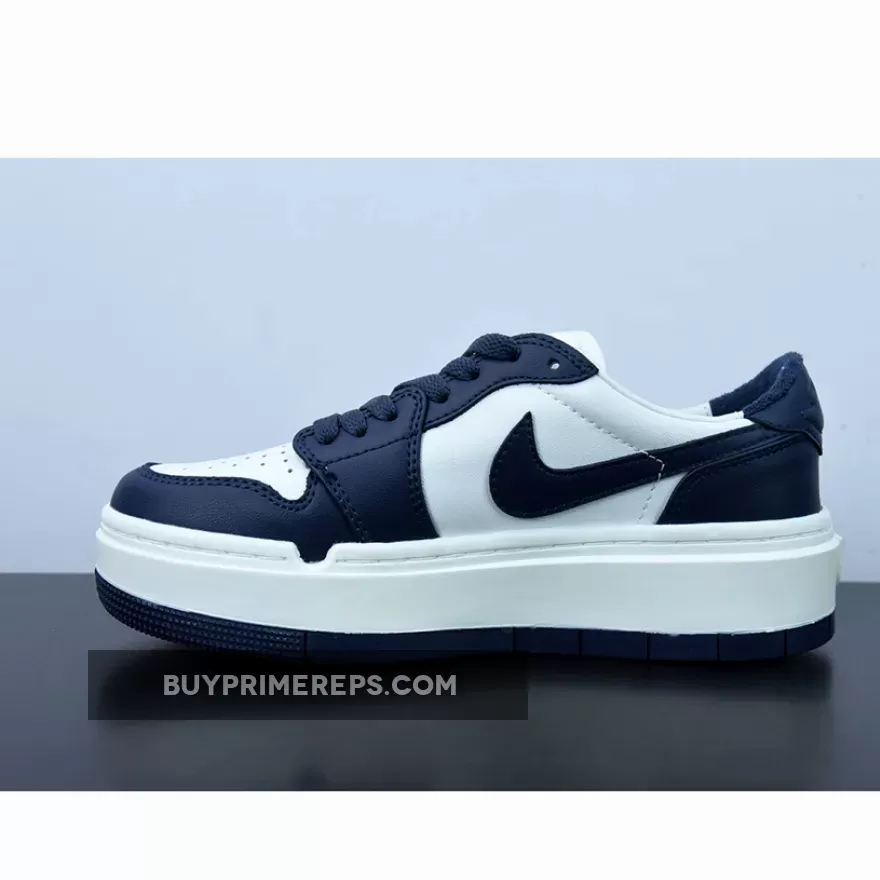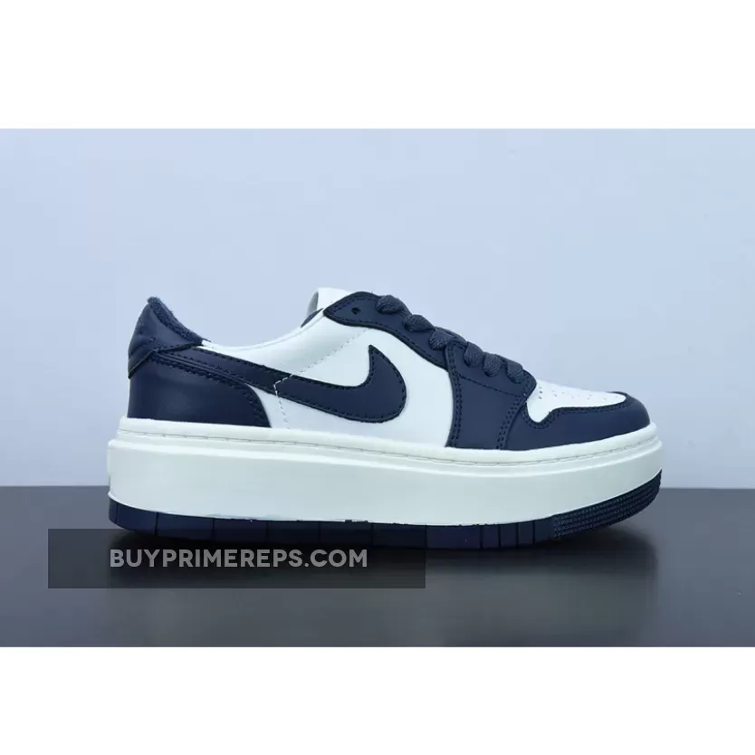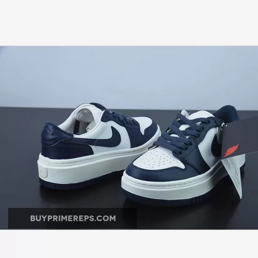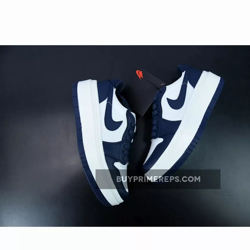 Introducing the Air Jordan 1 Low LV8D Midnight Navy, a stylish and versatile sneaker that is sure to elevate your footwear game. This latest iteration of the Air Jordan 1 Low features a classic two-toned design that is perfect for any occasion. The base of the shoe is a clean white, while the overlays, including the iconic Swooshes on both the medial and lateral sides of the shoe, are in a striking Midnight Navy color.