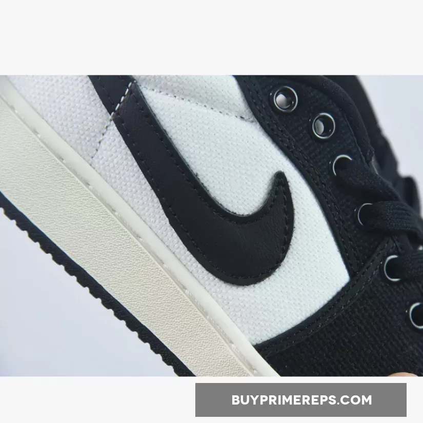 Staying true to its previous iterations, this Air Jordan 1 KO Low maintains its construction details with a canvas base in white. The signature profile Swooshes and heel tabs are crafted from contrasting black leather, adding a touch of sophistication to the design. Black canvas overlays can be found on the toe cap, mudguard, and eye stay panels, creating a bold and dynamic look.