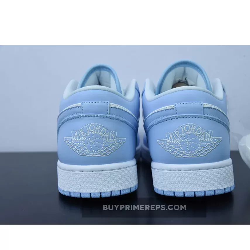 One of the standout features of the Air Jordan 1 Low “Aluminum” is the embroidered Wings logo on the heels. This iconic logo is a symbol of the Air Jordan brand and adds a touch of authenticity and prestige to the sneaker. The Aluminum Blue color of the logo matches the rest of the shoe, creating a cohesive and stylish look.