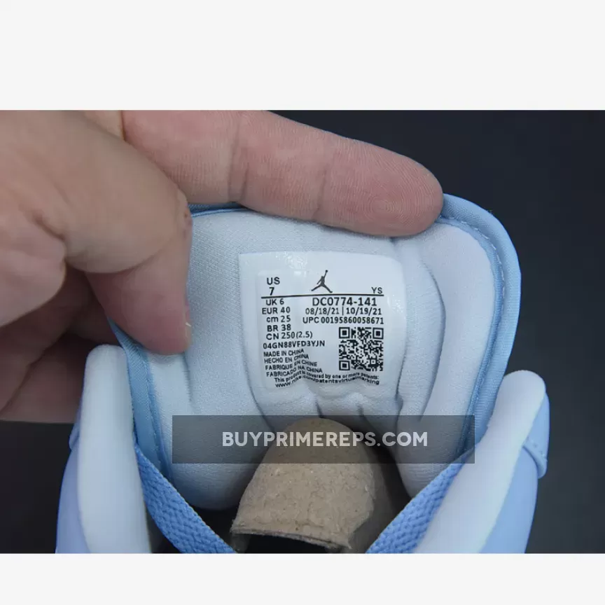 The upper of the Air Jordan 1 Low “Aluminum” is constructed with a combination of materials. The white leather base provides a classic and timeless look, while the Aluminum Blue overlays add a pop of color and visual interest. The overlays are strategically placed on the sides, toes, and ankles, creating a unique and eye-catching design. The Nike Swoosh logos on the sides are also done in Aluminum Blue, adding to the cohesive color scheme.