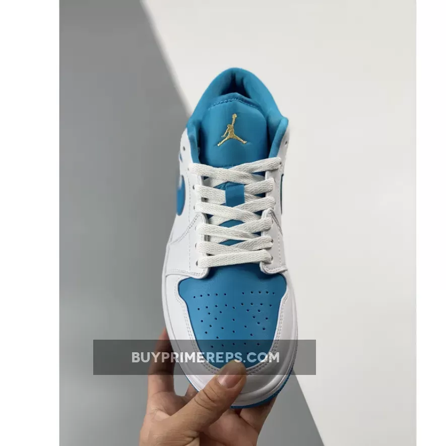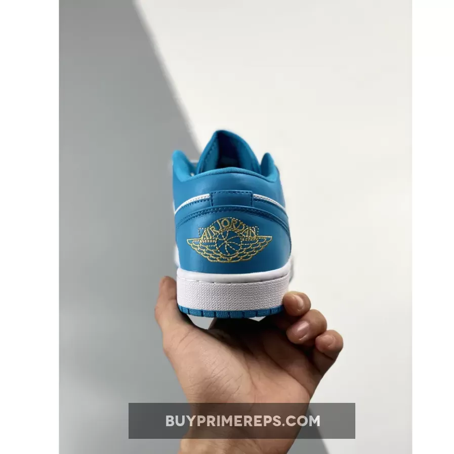 As with all Air Jordan 1 sneakers, the attention to detail is impeccable. The Air Jordan Wings logo is embroidered on the back of the heel in a dazzling Celestial Gold color, adding a touch of luxury and exclusivity to the shoe. The Jumpman logo is also present on the tongue, adding to the overall branding and authenticity of the Air Jordan 1 Low Aquatone.
