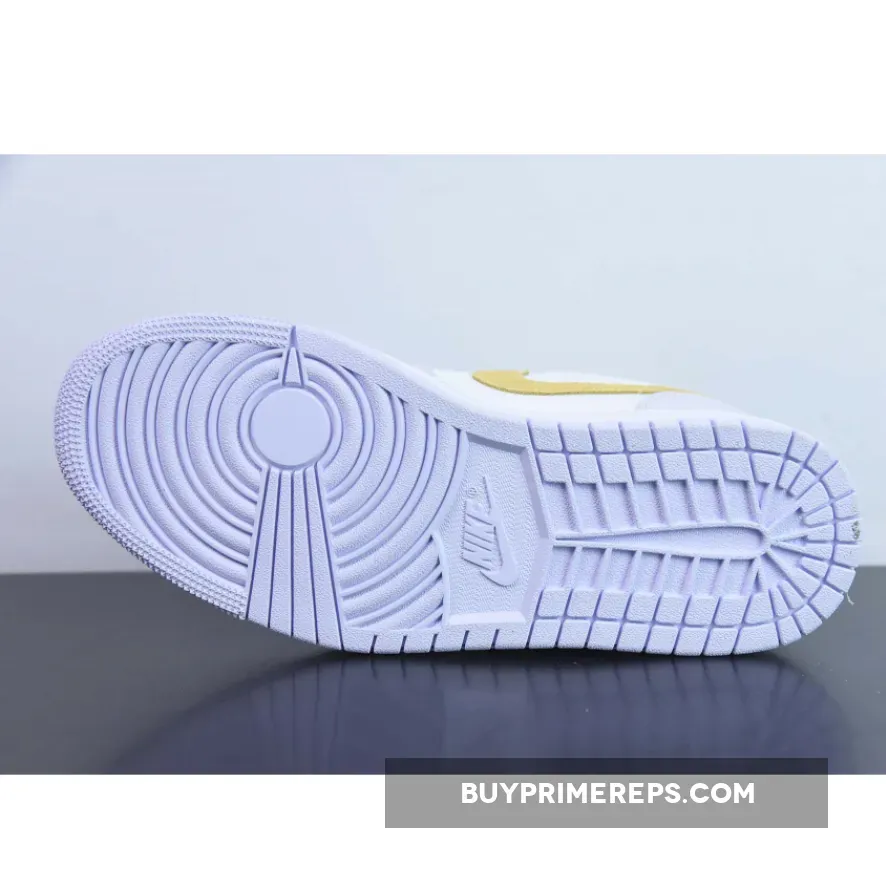 Get ready to elevate your sneaker game with this stunning new colorway of the iconic Air Jordan 1 silhouette. This women’s edition features a beautiful combination of colors, including Barely Grape, Lemon Wash, and White – perfect for the upcoming seasons. The design is light, airy, and sure to turn heads.