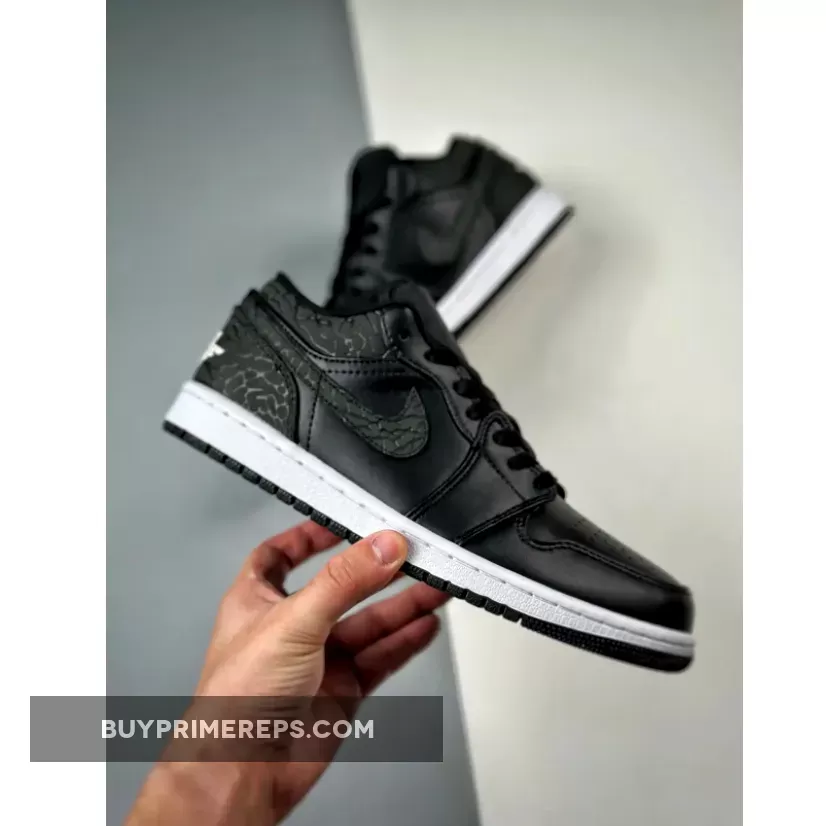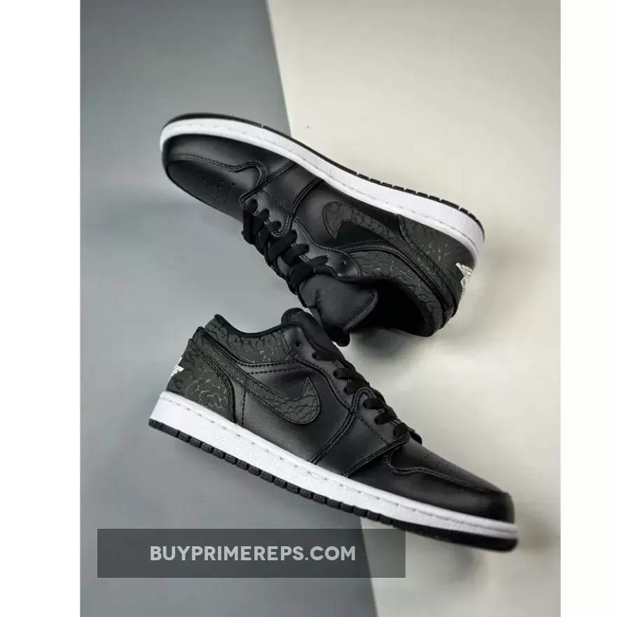 The Air Jordan 1 Low “Black Elephant” Black White FB9907-001 is a stunning rendition of the iconic Air Jordan 1 Low silhouette. Jordan Brand continues to push the boundaries of design, this time by incorporating the beloved elephant print onto the classic low-top model.