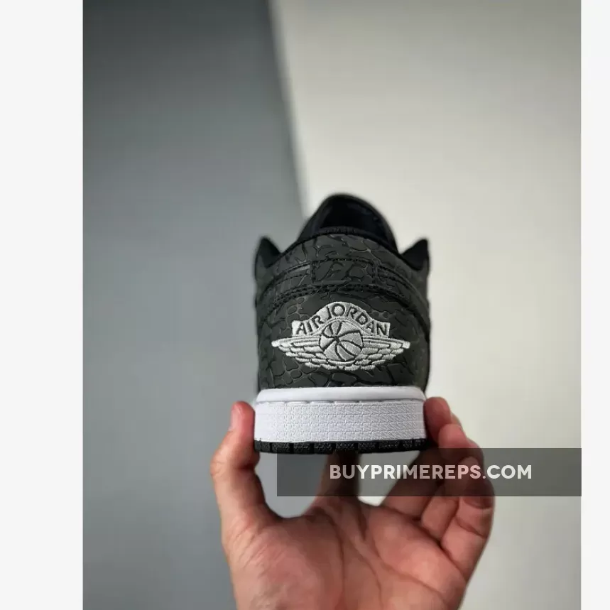 One of the standout features of the Air Jordan 1 Low “Black Elephant” is the elephant print overlays that adorn the Swooshes, collar, and heel. This signature print, famously seen on Tinker Hatfield’s Air Jordan 3, adds a unique and eye-catching element to the design. The textured panels provide a nice contrast to the smooth leather base, creating a visually appealing look.