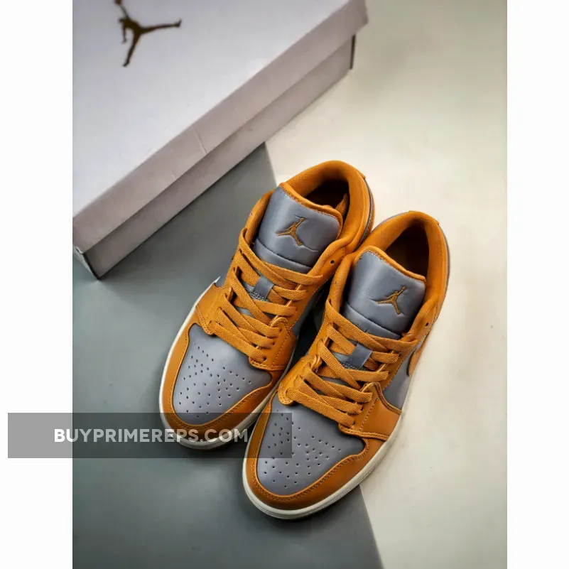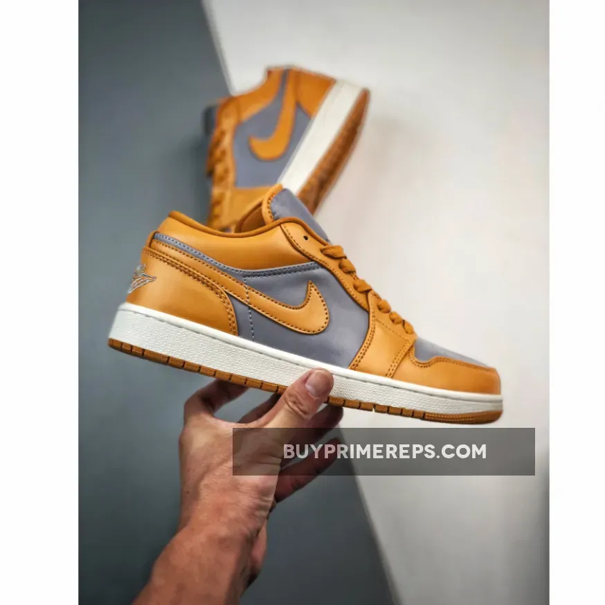 In addition to its stylish design, the Air Jordan 1 Low “Grey/Curry” offers optimal comfort and functionality. The perforated toe box allows for breathability, ensuring that your feet stay cool and dry throughout the day. The white midsole provides cushioning and support, making these sneakers ideal for daily wear.