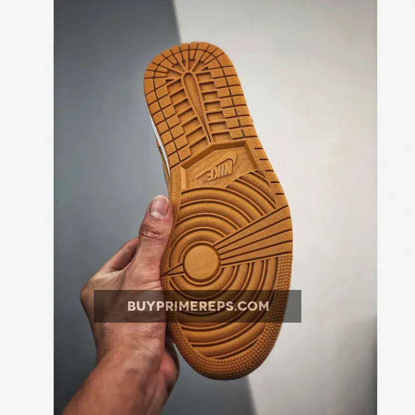 One of the most recognizable features of the Air Jordan 1 is the Nike Swoosh logo, and this iteration does not disappoint. The Swoosh is prominently stitched onto both the lateral and medial sides of the shoe, adding a touch of branding and a classic aesthetic. The wings logo at the heels and Jumpman embroidery on the tongues further enhance the iconic Jordan branding.