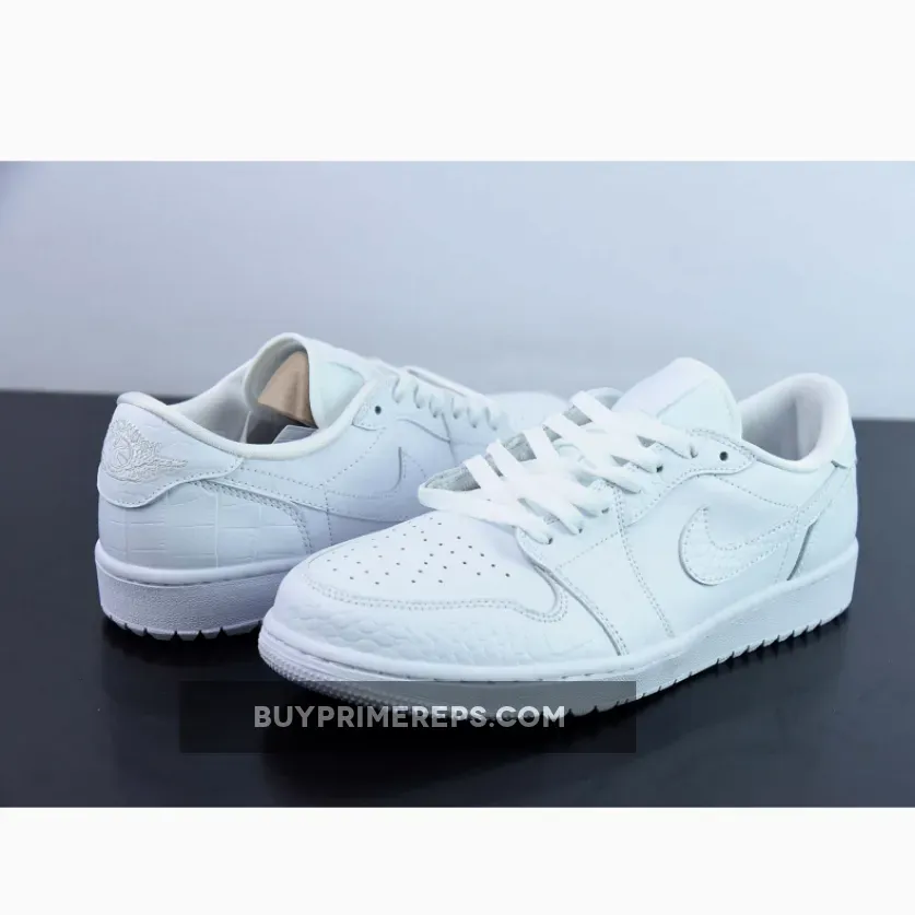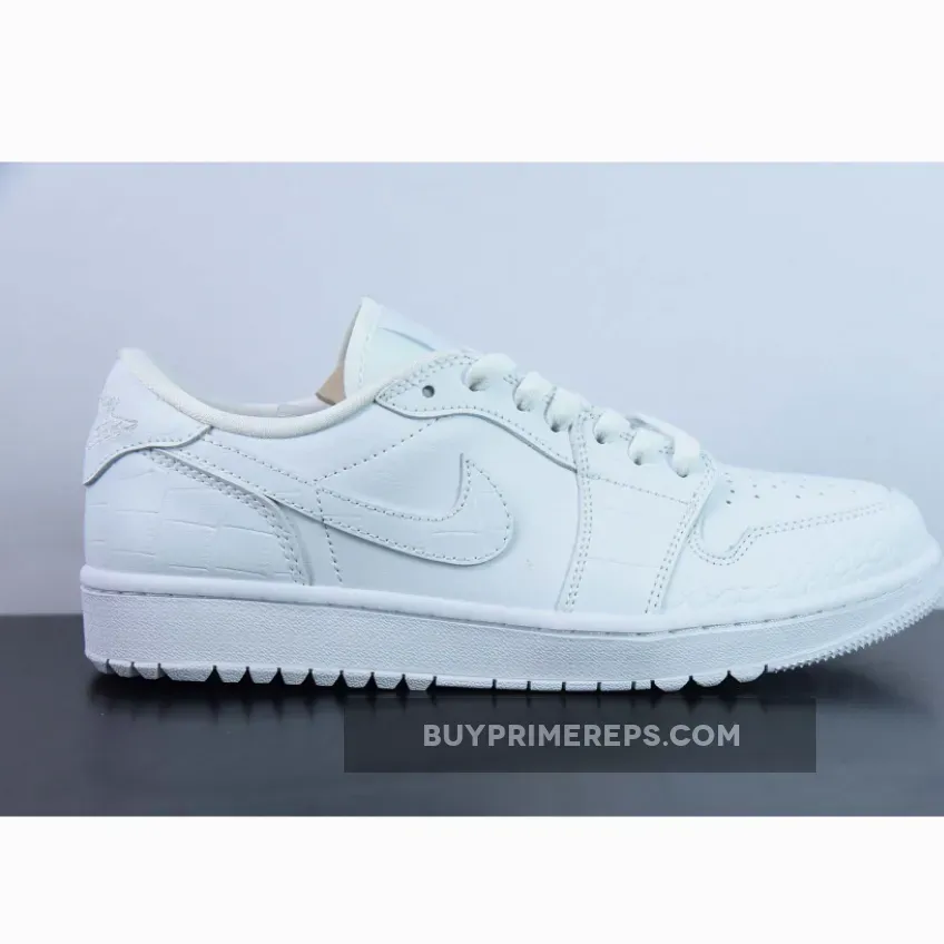 Introducing the Air Jordan 1 Low Golf “Croc” White/Pure Platinum – a stylish and functional golf shoe that combines the iconic design of the Air Jordan 1 with the performance features needed for the golf course.