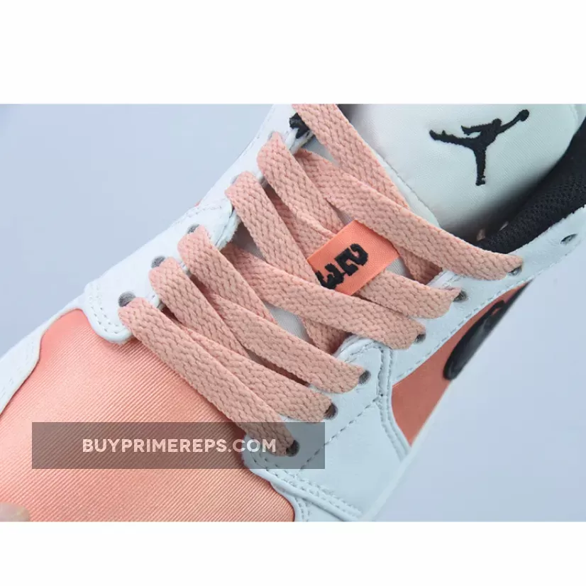 The standout feature of this Air Jordan 1 Low is the use of a metallic finish on the toe box and mid-panel, giving it a sparkling and luxurious look. The color, aptly named “Light Madder Root,” is a beautiful peach hue that adds a touch of femininity and elegance to the shoe. The shiny satin material used on these areas further enhances the premium aesthetic.