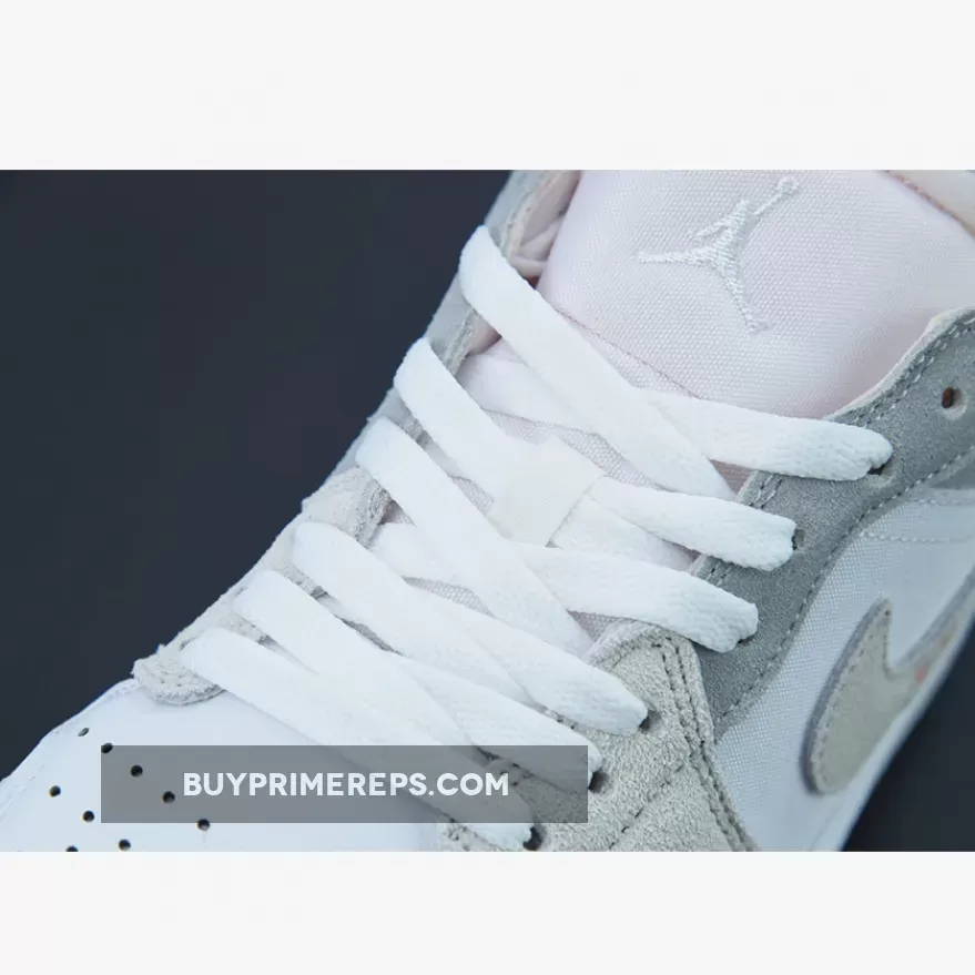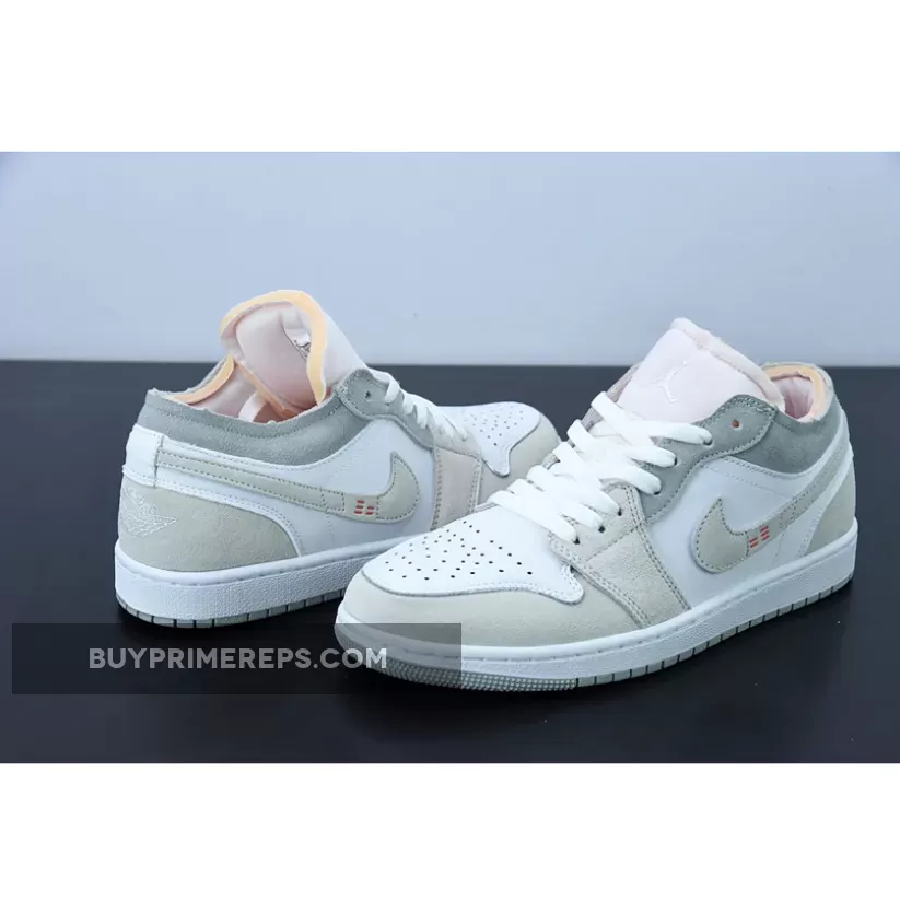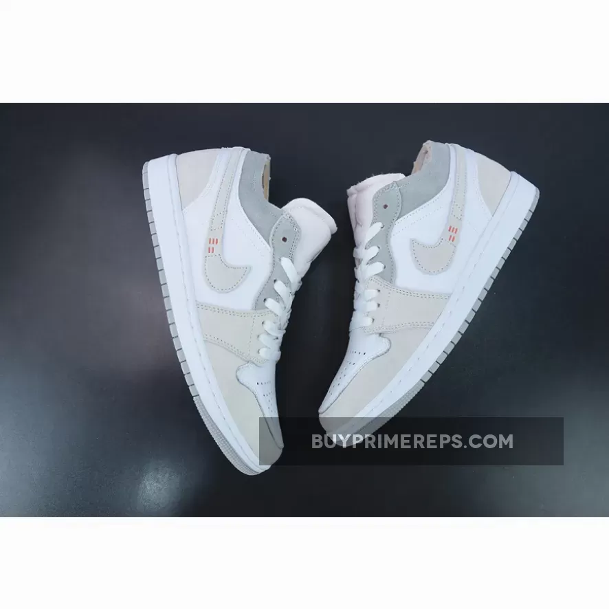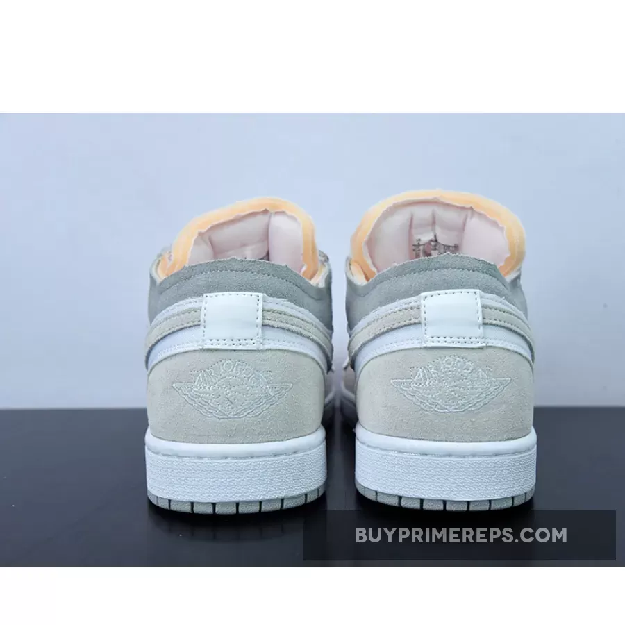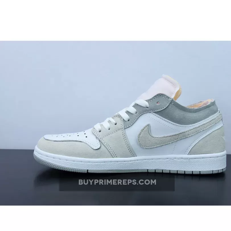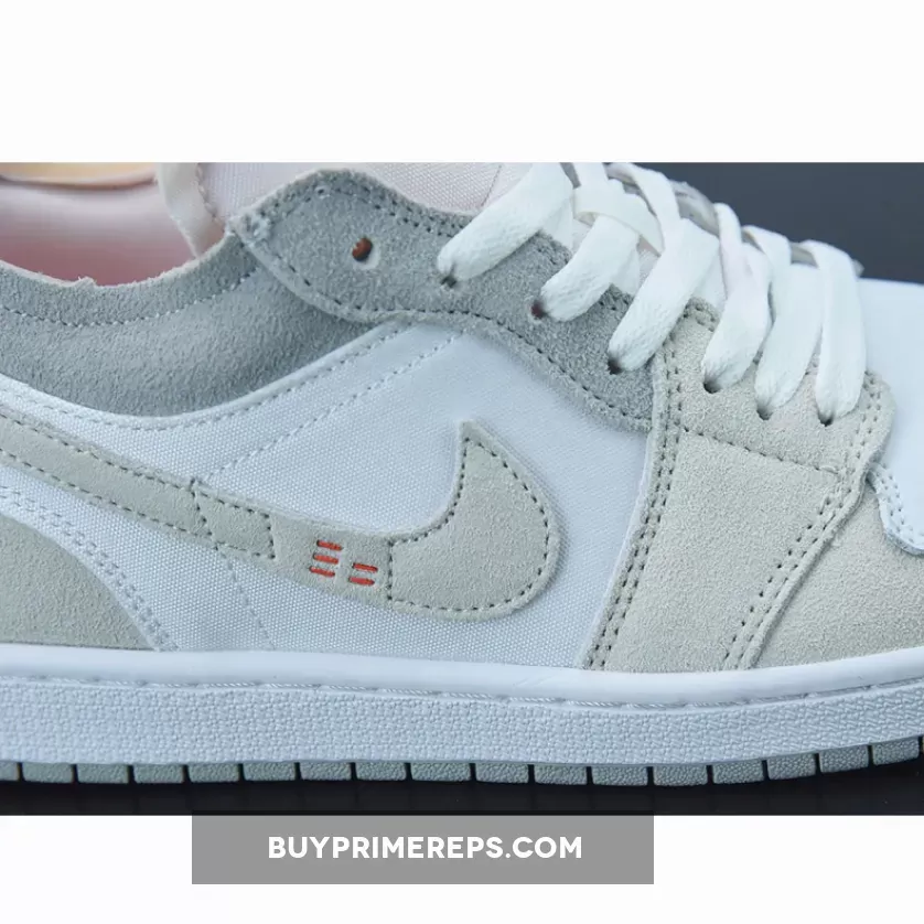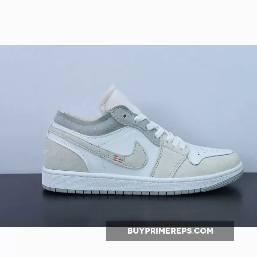 The upper of the Air Jordan 1 Low Inside Out is crafted from smooth white leather, giving it a clean and sleek look. Adding depth and texture to the design, cream and grey suede overlays are placed strategically throughout the shoe. These overlays not only enhance the aesthetics but also provide durability and support.