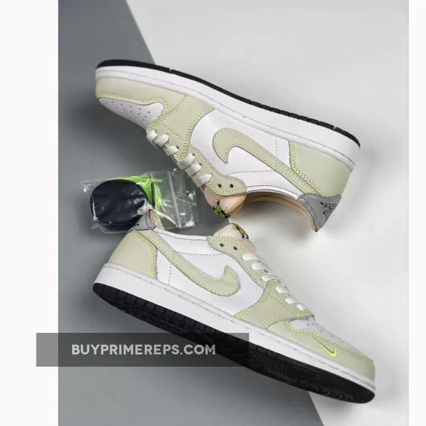Whether you’re a collector, a fan of the Jordan brand, or simply someone who appreciates a stylish and comfortable sneaker, the Air Jordan 1 Low White/Ghost Green-Black is a must-have addition to your collection. Its timeless design, vibrant color scheme, and attention to detail make it a standout choice that will elevate any outfit.
