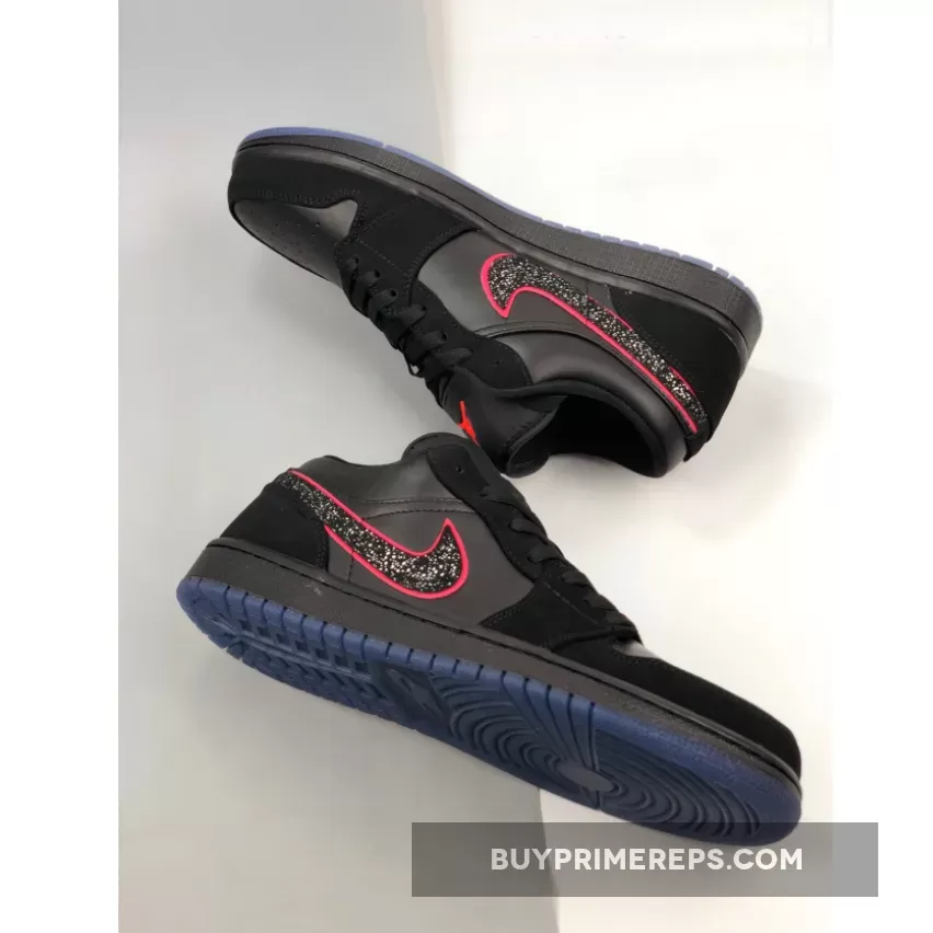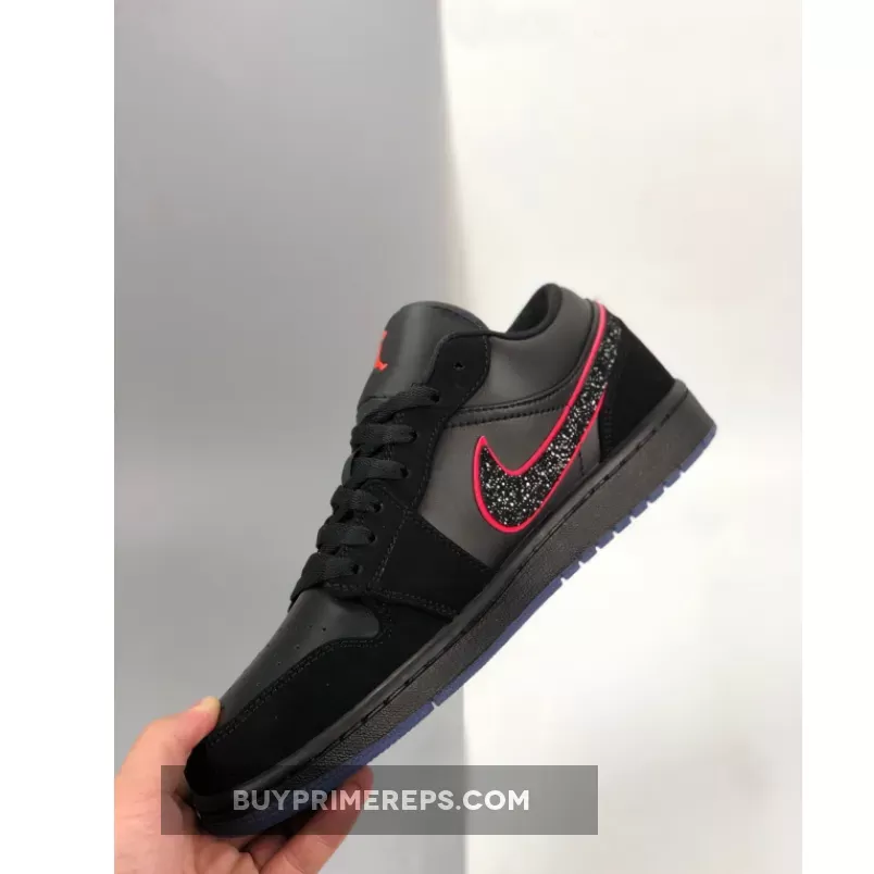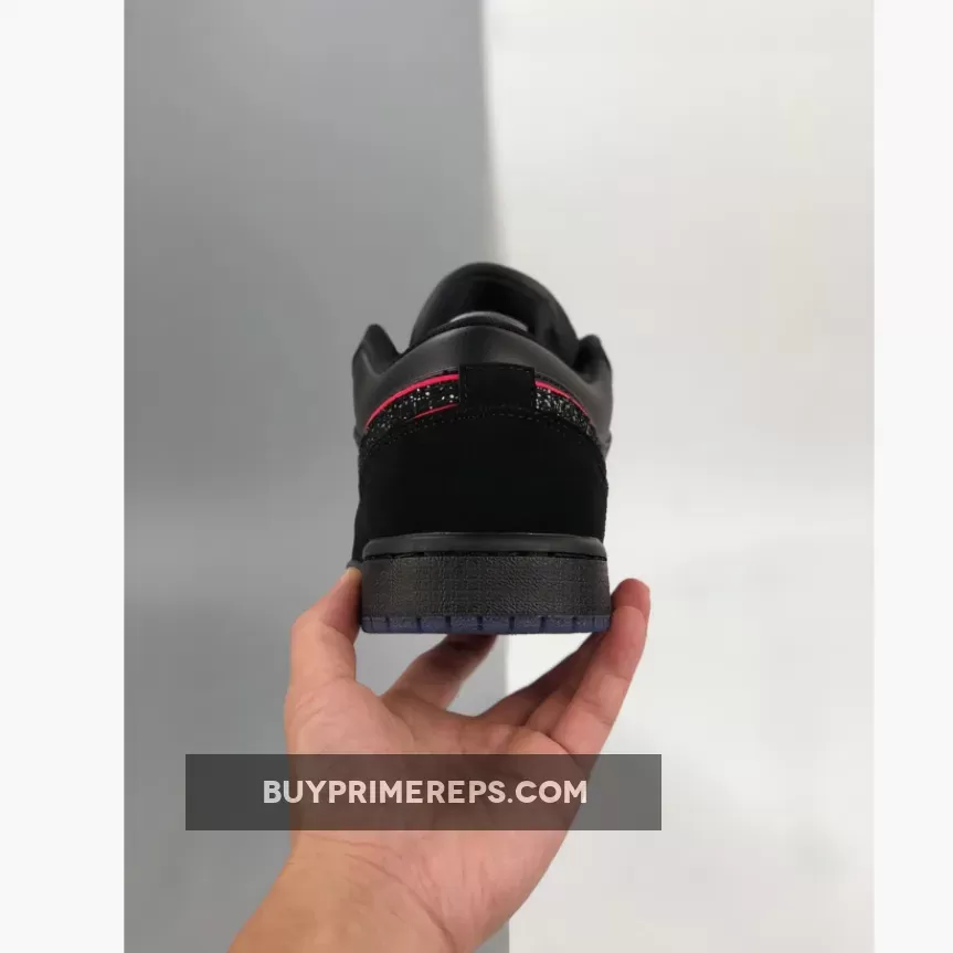 The Air Jordan 1 Low Black Red Orbit also features a blue translucent outsole, adding another layer of style to the design. The translucent outsole not only looks cool but also provides excellent traction and grip, making these sneakers perfect for both casual wear and athletic activities.