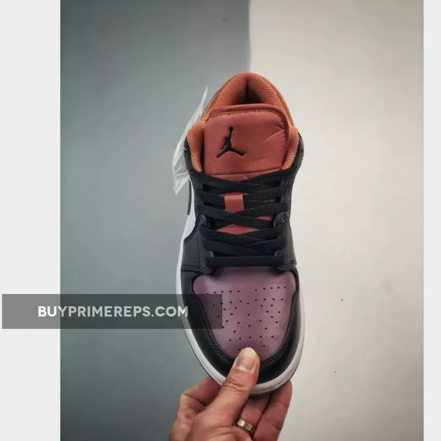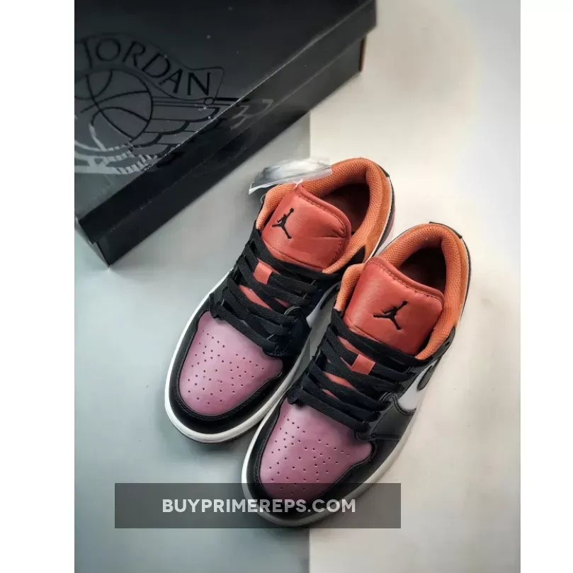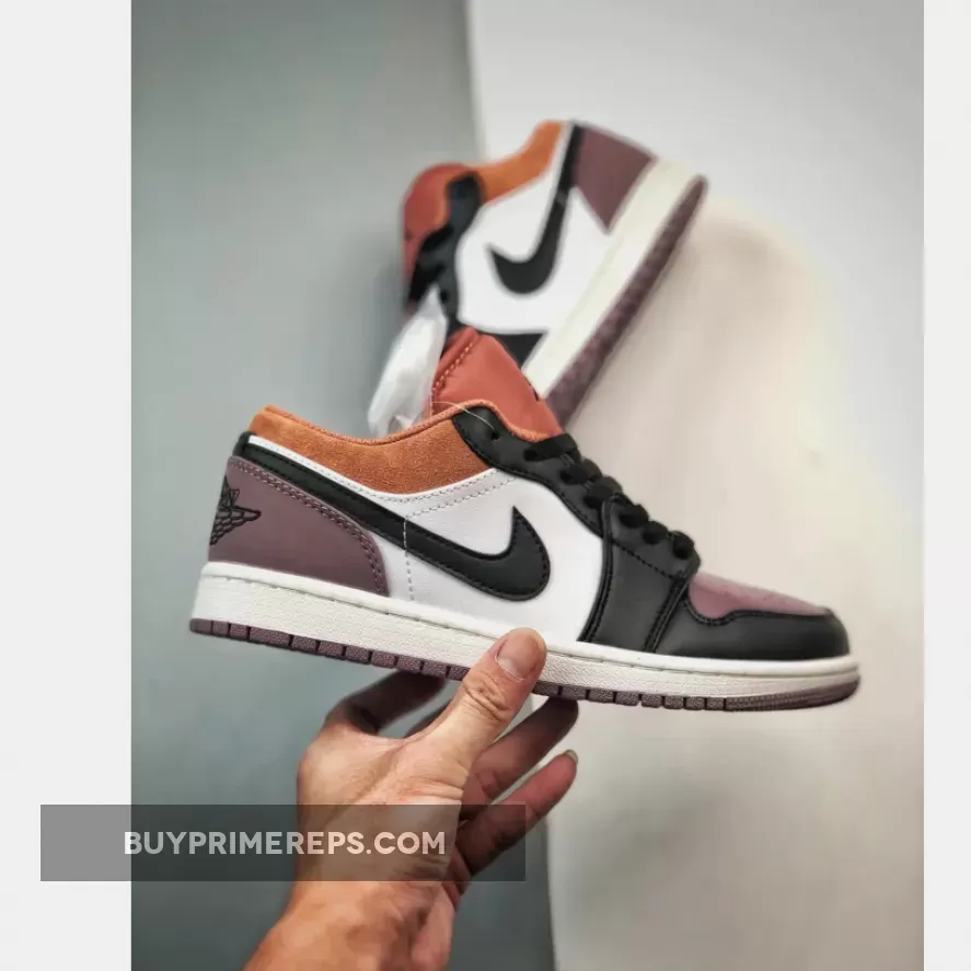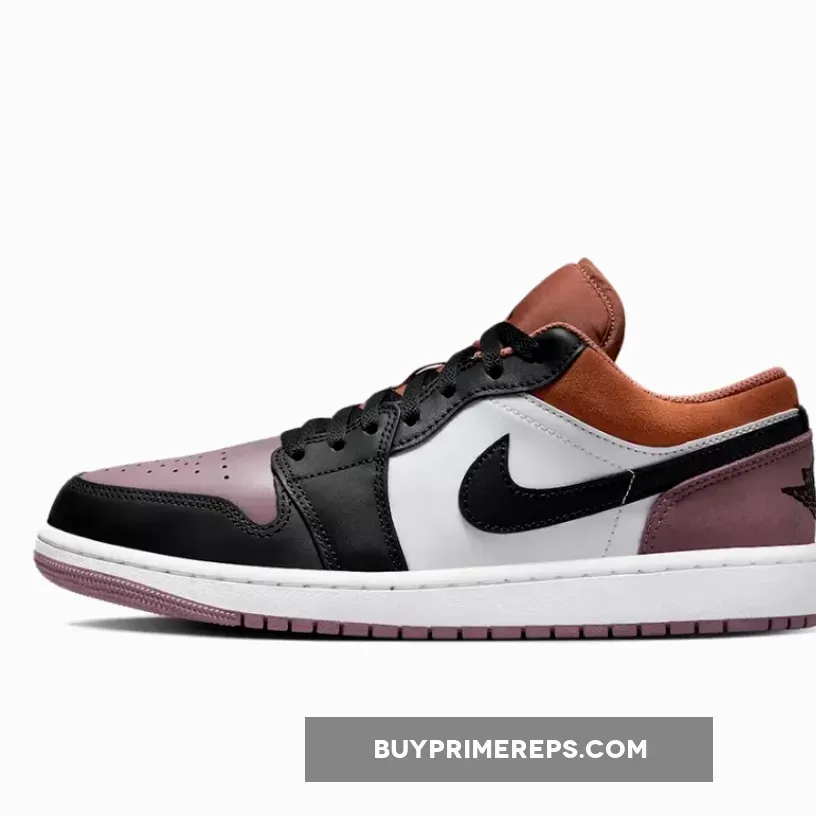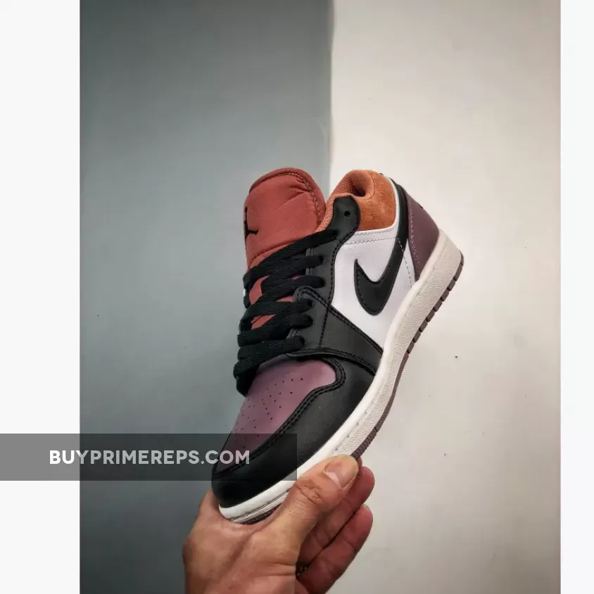 The standout feature of the Air Jordan 1 Low “Sky J Mauve” is its captivating Sky J Mauve hue. This vibrant color takes center stage on the toe box, heels, and outsole, creating a striking contrast against the black and white backdrop. The toe box is given a pearlescent finish, adding an extra touch of elegance to the overall look.