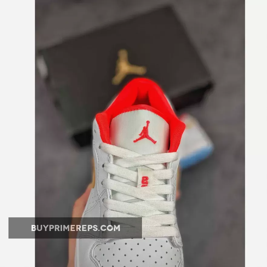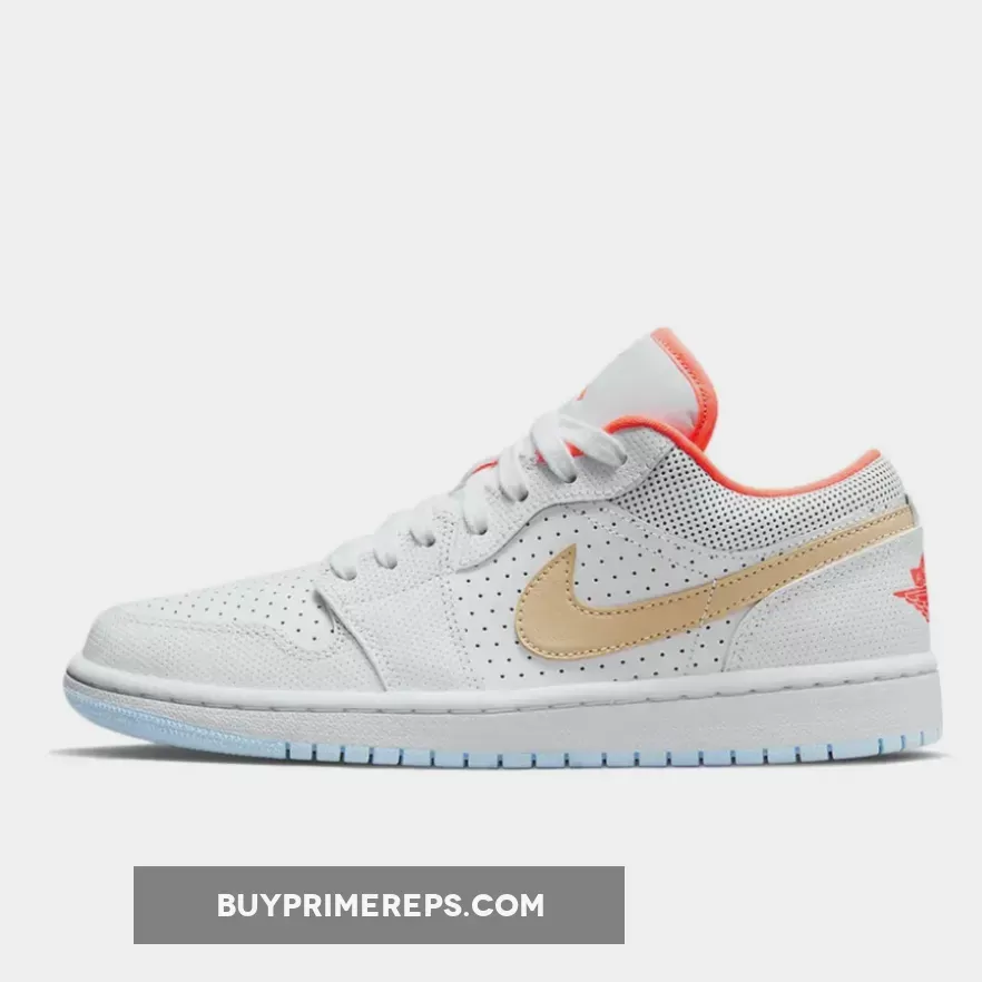 What sets the Air Jordan 1 Low SE White Sesame apart is the unique perforation pattern. The toe-guard, quarter, lace collar, and heel feature a micro-perforation design, while the toe-box and mid-panel boast a different spacing that creates a distinctive look. This attention to detail adds an extra layer of sophistication to the shoe.
