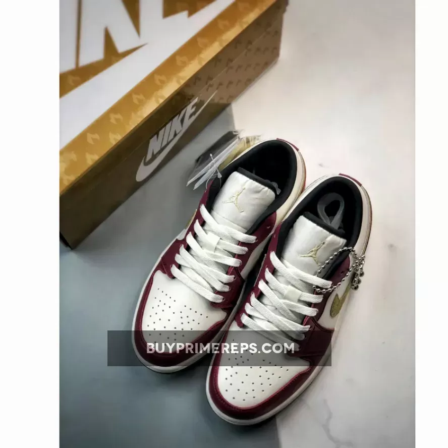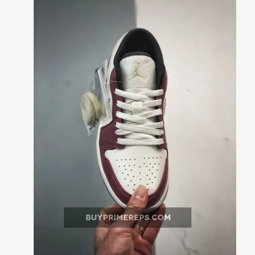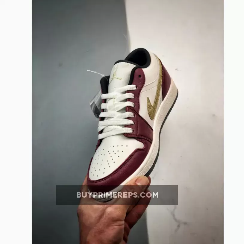 The color palette of this shoe is a combination of Sail and Dark Team Red, creating a sophisticated and vintage look. The upper is made of Sail leather, while the overlays are crafted from Dark Team Red leather. The Metallic Gold Swoosh logos add a touch of luxury to the overall design.