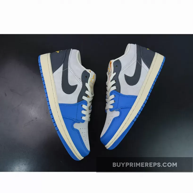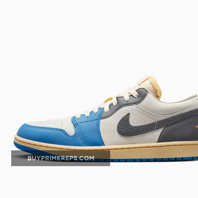 One of the standout features of the Air Jordan 1 Low UNC Grey is its color-blocking design. The lightweight peach midsole adds a pop of color and complements the vibrant blue and grey tones of the upper. The durable icy outsole not only adds to the shoe’s aesthetic appeal but also provides excellent traction.