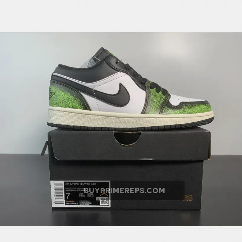 Introducing the Air Jordan 1 Low SE “Electric Green” – a bold and electrifying twist on a classic silhouette. This limited-edition release combines premium tumbled leather with vibrant pops of color to create a truly show-stopping sneaker.