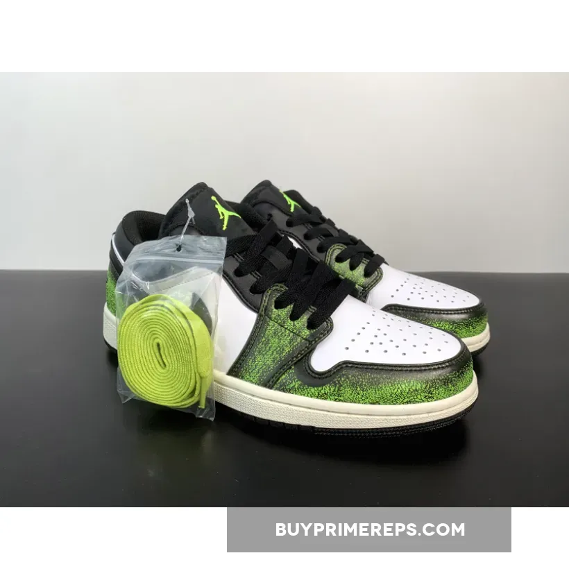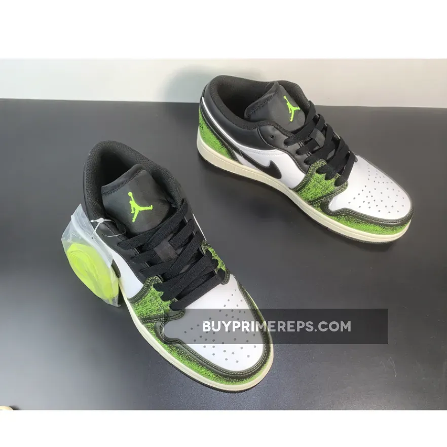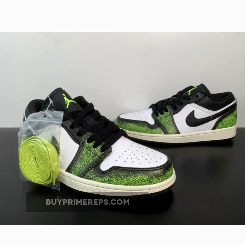 The AJ1 Low has long been a fan favorite, offering a sleek and stylish take on the iconic Air Jordan 1 design. And now, with the addition of “Electric Green” accents, this low-cut masterpiece is sure to turn heads. The rich, green hue adds a bold touch to the classic black and white colorway, making it perfect for those who like to make a statement.