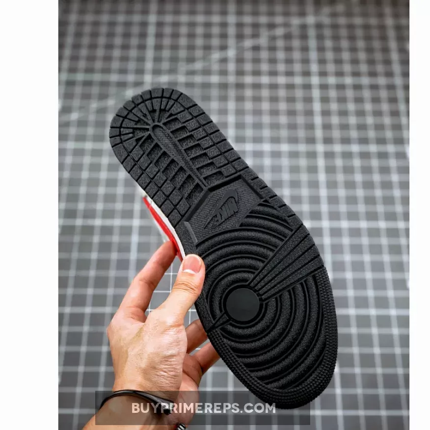 The Air Jordan 1 Low White Red also features a black rubber sole, which not only provides excellent traction but also complements the overall color scheme. The contrasting black adds depth to the design, creating a visually appealing aesthetic.