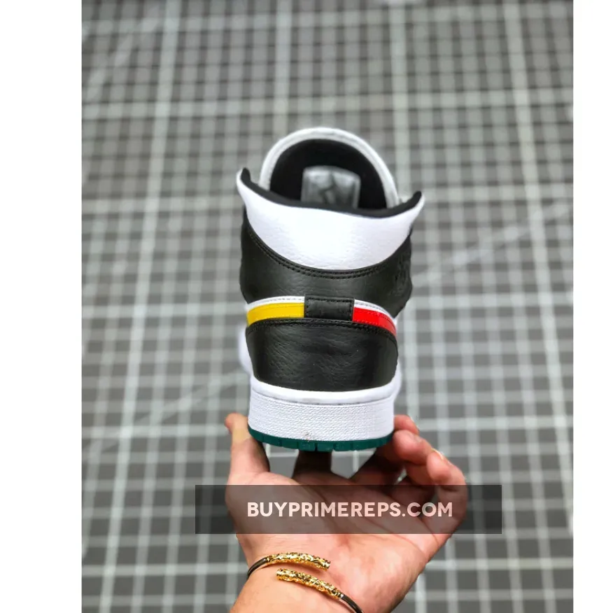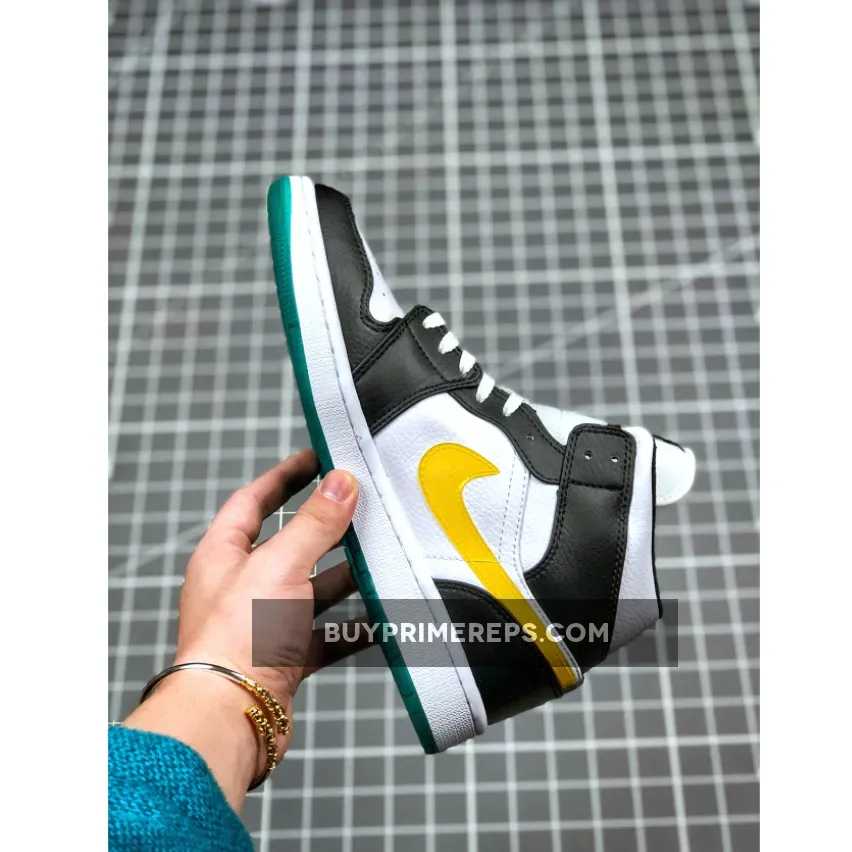 The upper of the Air Jordan 1 Mid is constructed from smooth leather, providing durability and a luxurious feel. The black tumbled leather overlays on the toe, lace guards, heel, and ankle add a touch of texture and reinforcement to the shoe. Perforations on the toe box allow for breathability, ensuring that your feet stay cool and comfortable.