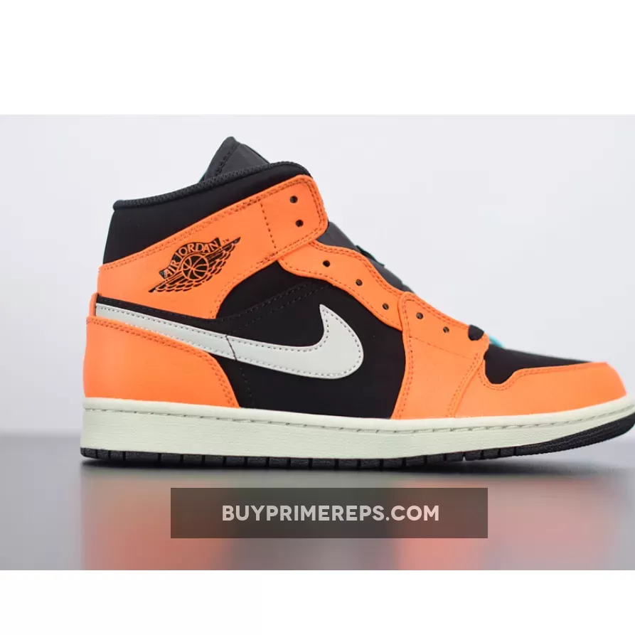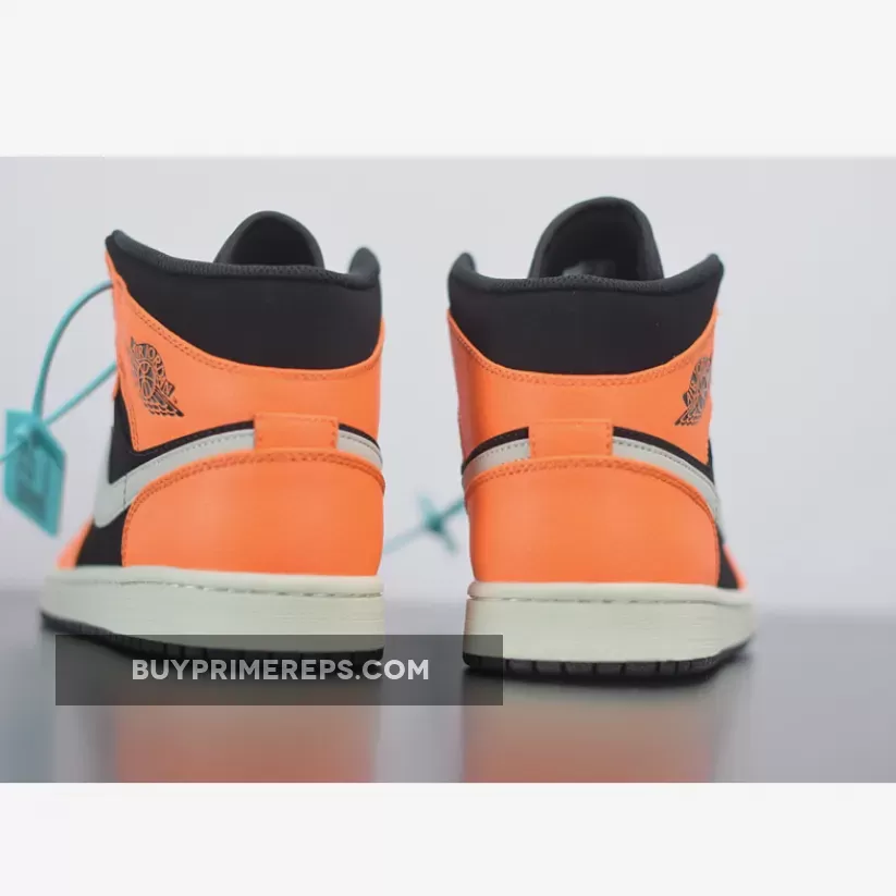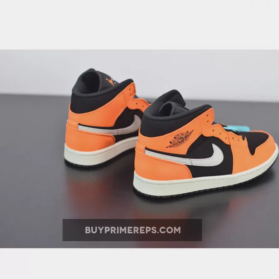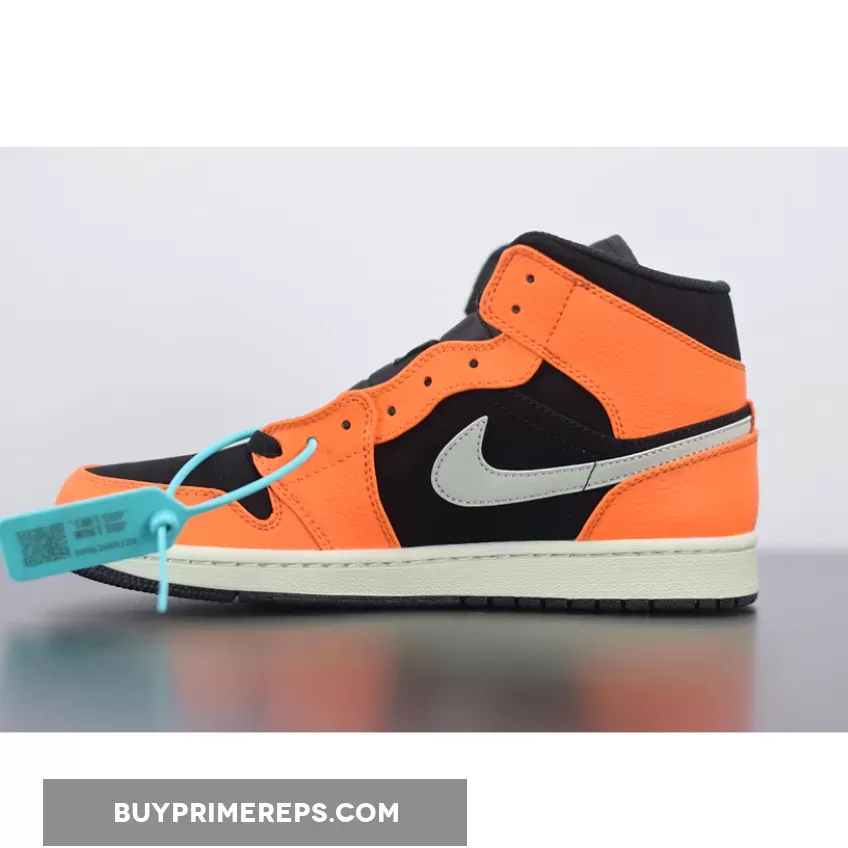Elevate your style game with the latest addition to the Jordan family – the Air Jordan 1 Mid “Orange/Black”. This bold and eye-catching sneaker is sure to turn heads wherever you go. The sleek black upper provides a sophisticated backdrop for the vibrant orange tumbled leather overlays, adding a pop of color that’s hard to ignore.