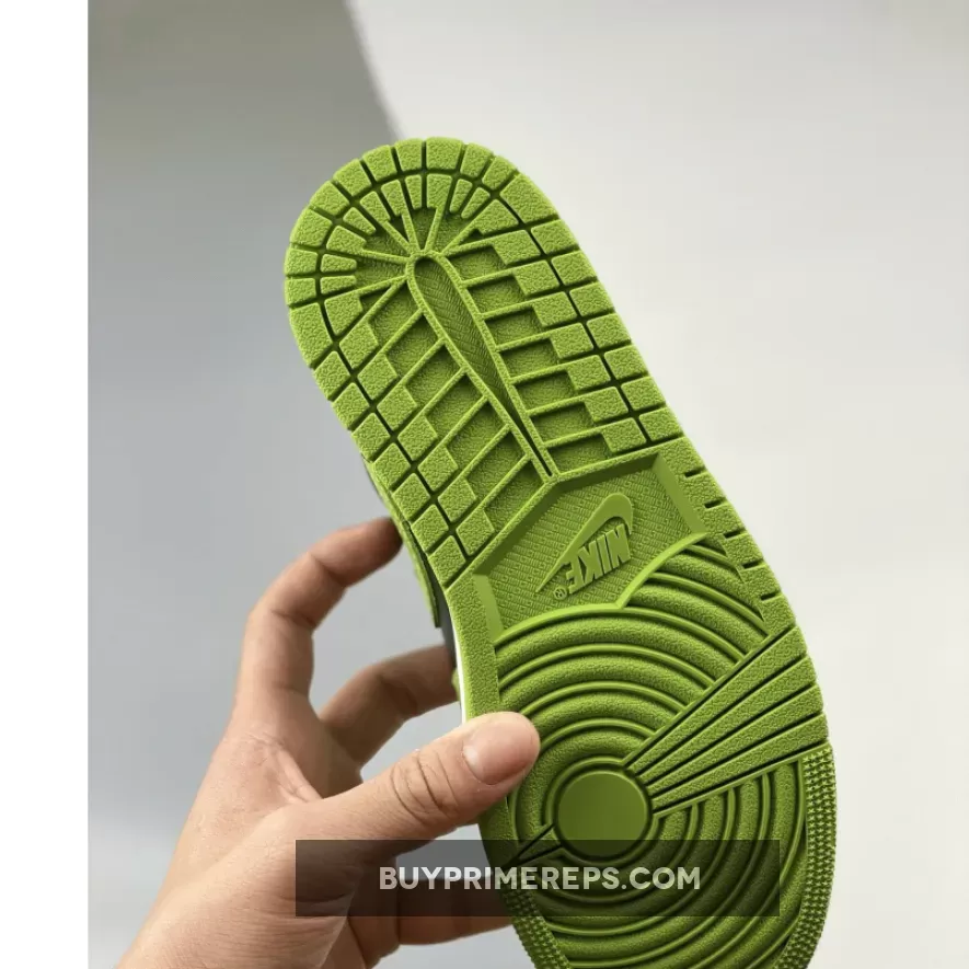 Completing the design is a clean white midsole that not only provides a stark contrast to the black and green color scheme but also offers exceptional comfort and cushioning. The use of an Air midsole ensures that each step you take in these sneakers is supported and comfortable.