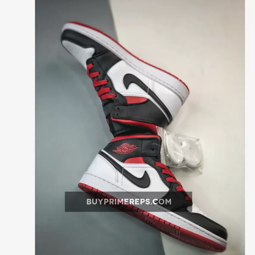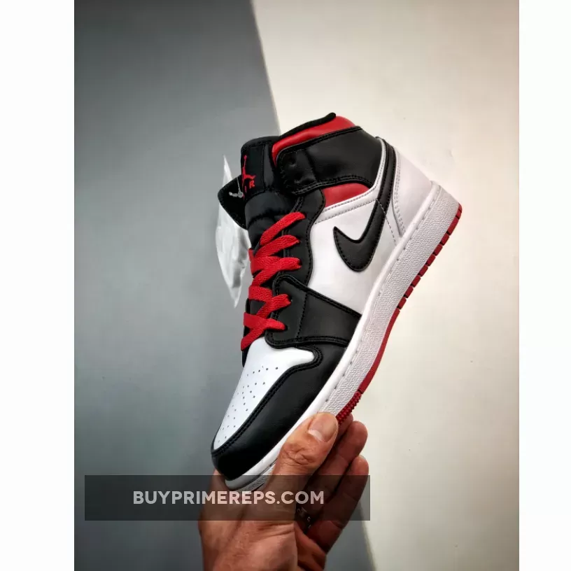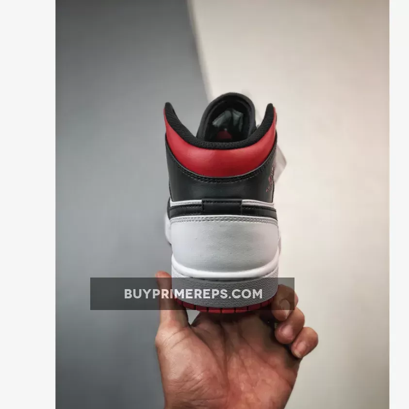 The upper of the Air Jordan 1 Mid is constructed with a combination of premium leather and synthetic materials, providing durability and comfort. The black toe box and eye stay add a touch of contrast to the predominantly white upper, while the black collar and Swoosh logo complete the iconic design. The red accents on the outsole and wings logo add a bold pop of color, making this shoe stand out from the crowd.