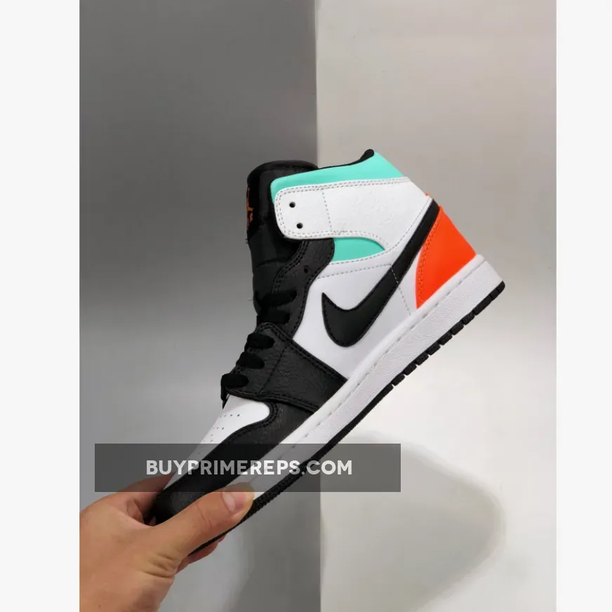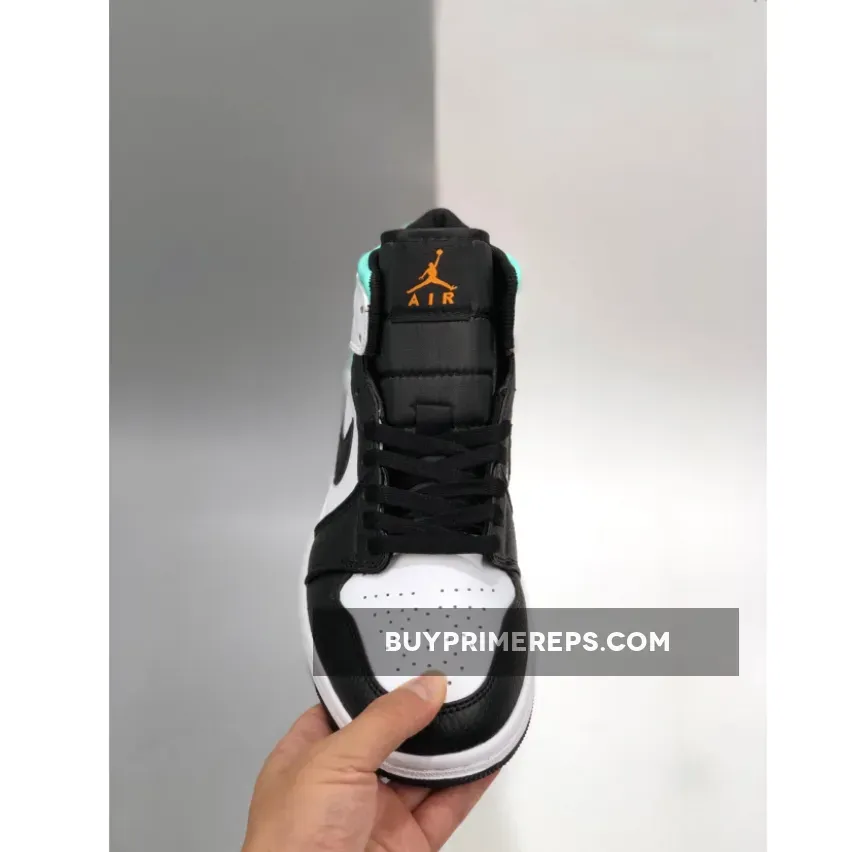 Overall, the Air Jordan 1 Mid GS Black Toe BQ6931-100 is a visually striking sneaker that offers both style and comfort. Its classic white and black base is elevated with mint green and orange accents, making it a unique and eye-catching choice. Don’t miss out on the opportunity to own this exceptional pair of sneakers.