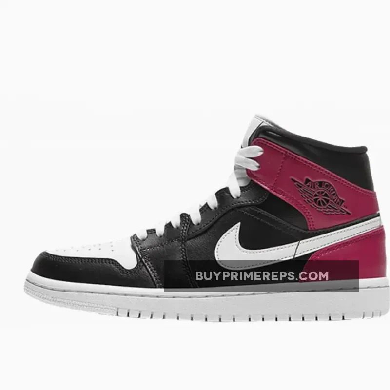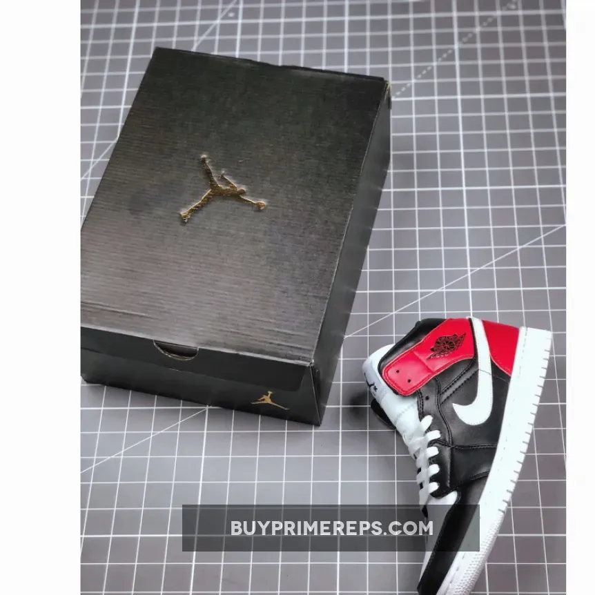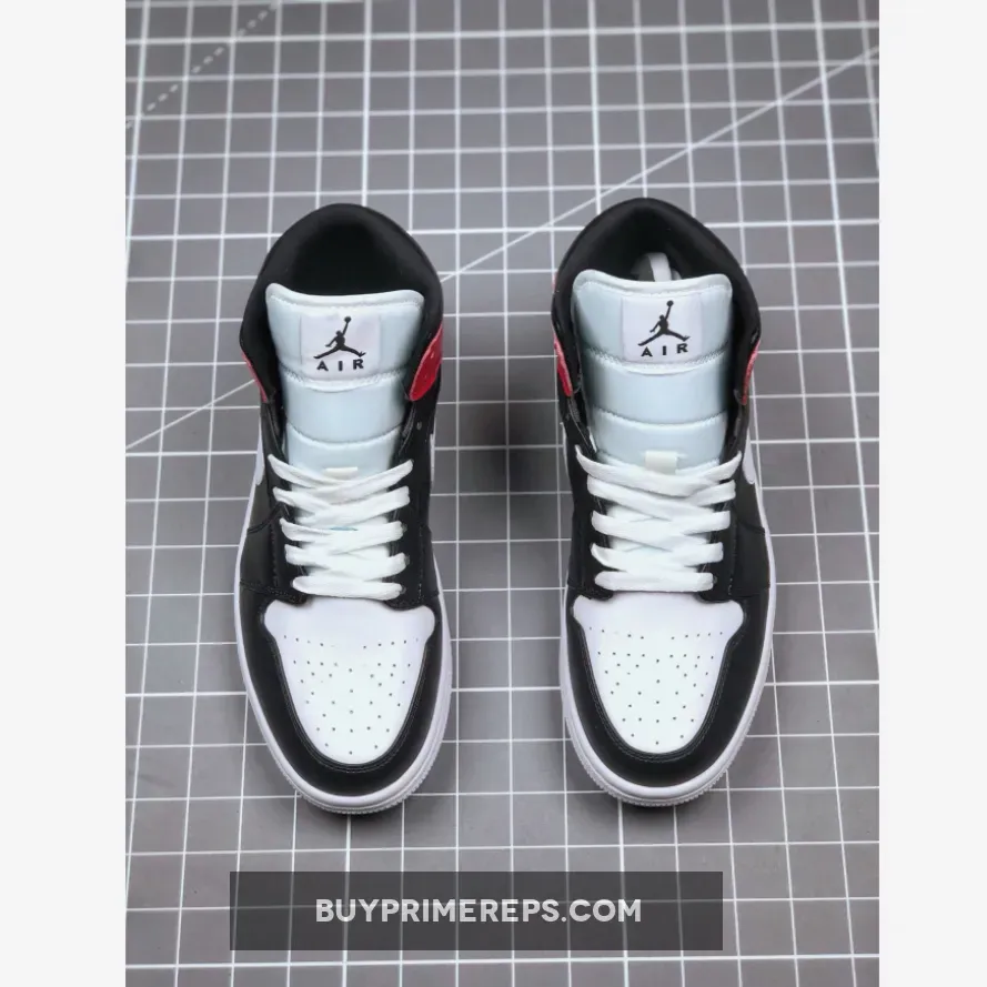 The design of the Air Jordan 1 Mid offers both style and comfort. The high-top silhouette provides extra support, while the cushioned midsole ensures a comfortable fit. The upper is constructed with smooth leather in contrasting colors. The toe box and tongue are dressed in clean white, creating a fresh and crisp look. Black overlays on the side panels add a touch of contrast and sophistication.