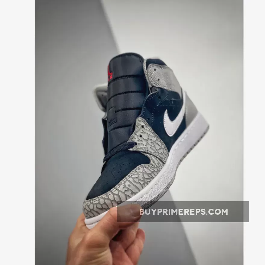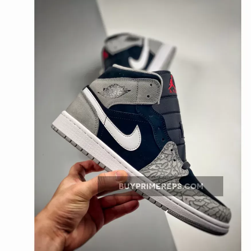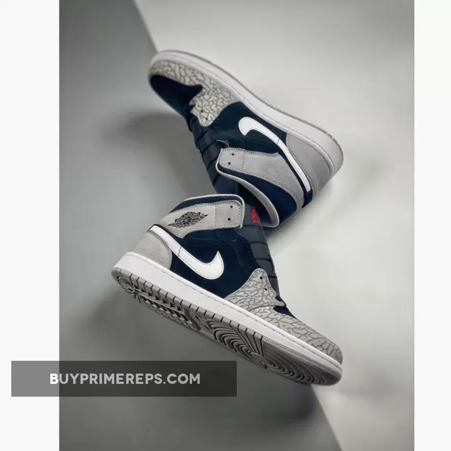 Comfort is not compromised with the Air Jordan 1 Mid Elephant Toe. The shoe is equipped with a white midsole that provides full-length cushioning, ensuring a comfortable and supportive fit. The grey rubber outsoles offer traction and durability, making these sneakers suitable for everyday wear.