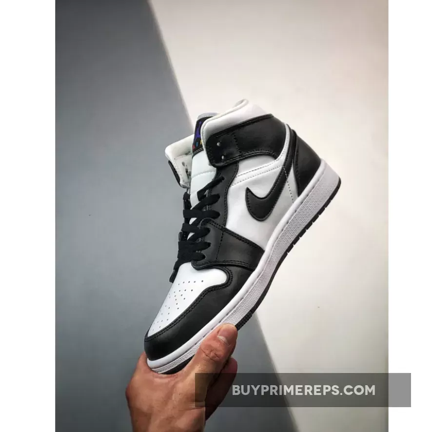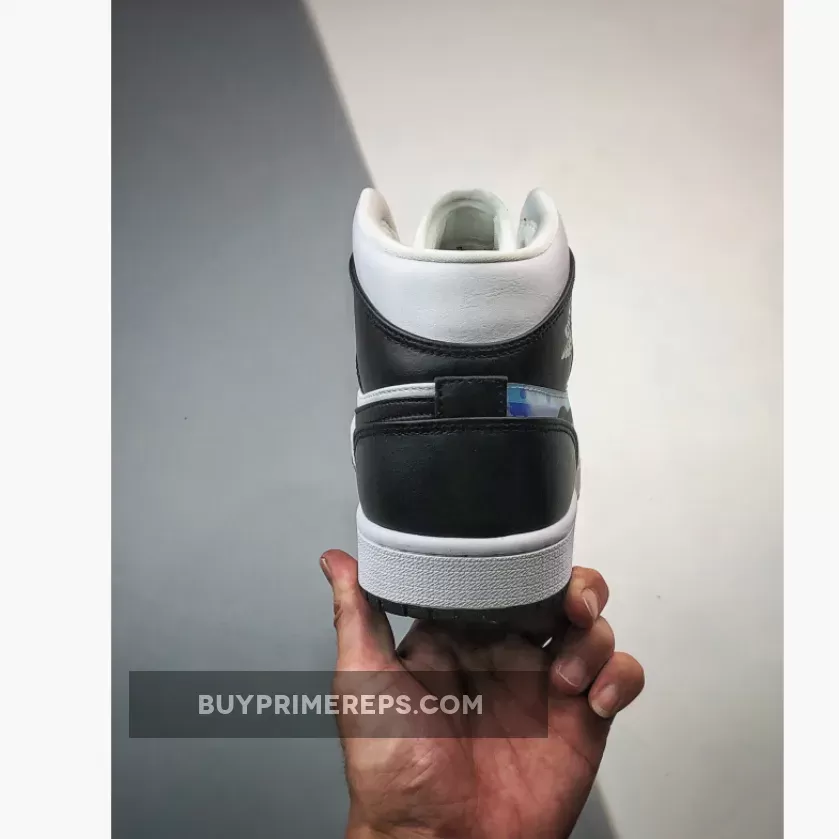 The Air Jordan 1 Mid Hologram Black White is a highly anticipated release that pays homage to the iconic Air Jordan 1 silhouette. This mid-top sneaker features a classic black and white color scheme, reminiscent of the original panda-inspired design. The color-blocking is expertly done, with black overlays contrasting against the white leather panels on the toe boxes, side walls, and collars.