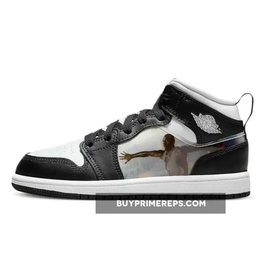 What sets this Air Jordan 1 Mid apart from others is the holographic overlays on the midfoot. These holographic panels showcase imagery of Michael Jordan in his early days, adding a unique and eye-catching element to the shoe. It’s a fitting tribute to the legendary basketball player and his impact on the sport.