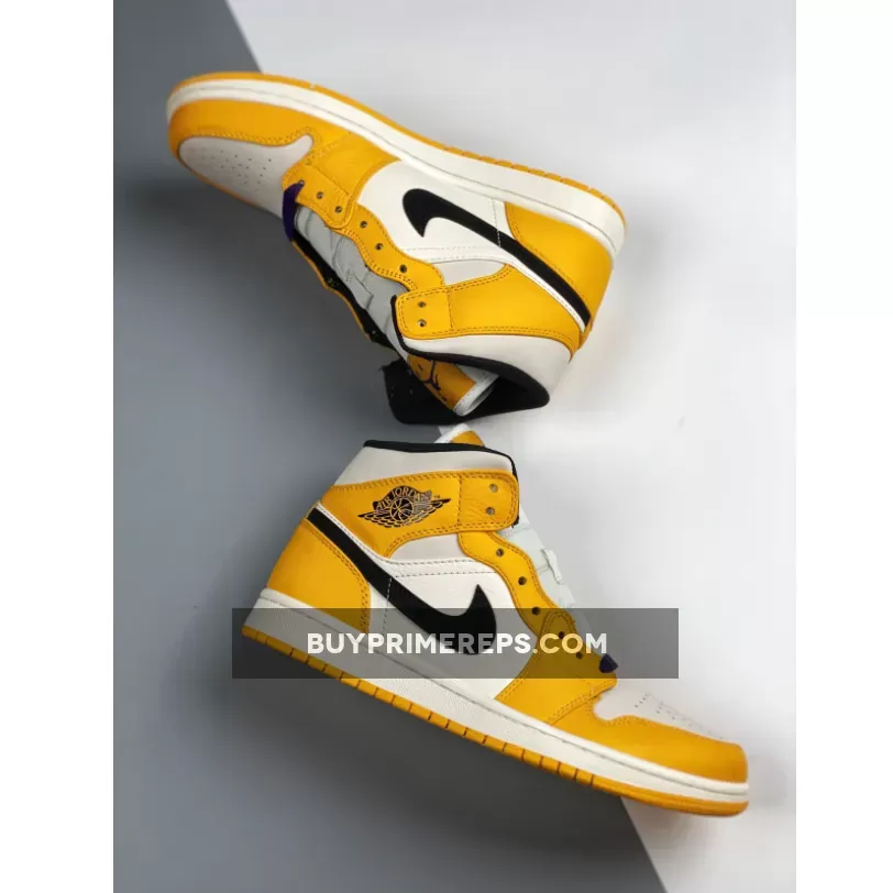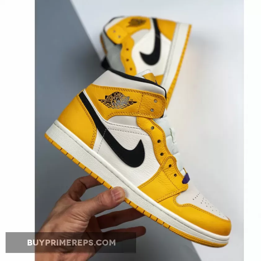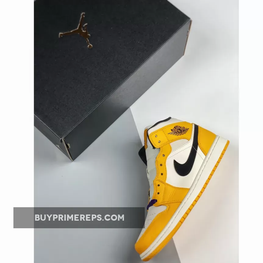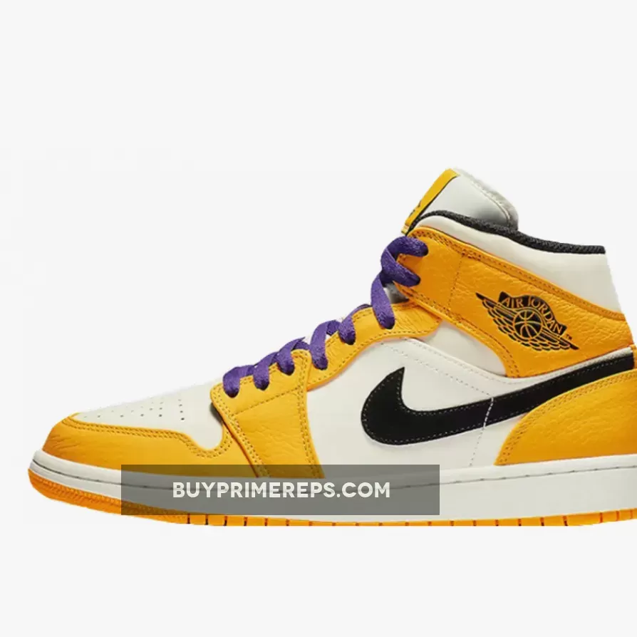 The Air Jordan 1 Mid ‘Lakers’ Sail Yellow is a mid-top sneaker that pays homage to the iconic Los Angeles Lakers basketball team. This shoe features a clean and classic design, with a Sail leather base and Yellow tumbled leather overlays. The combination of these two colors creates a striking contrast that immediately catches the eye.