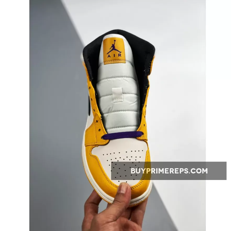 The Air Jordan 1 Mid ‘Lakers’ Sail Yellow is not only stylish, but it also offers the signature comfort and performance that you would expect from a Jordan Brand sneaker. The mid-top construction provides ankle support, making it suitable for both on and off the court. The Sail leather base is durable and easy to clean, ensuring that your sneakers will stay looking fresh for a long time.