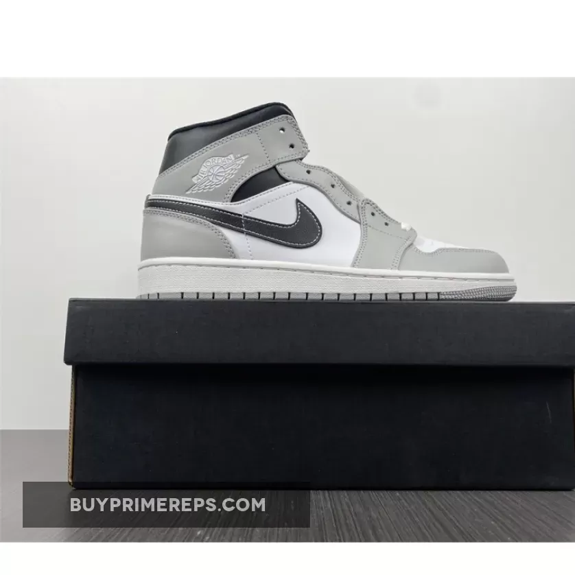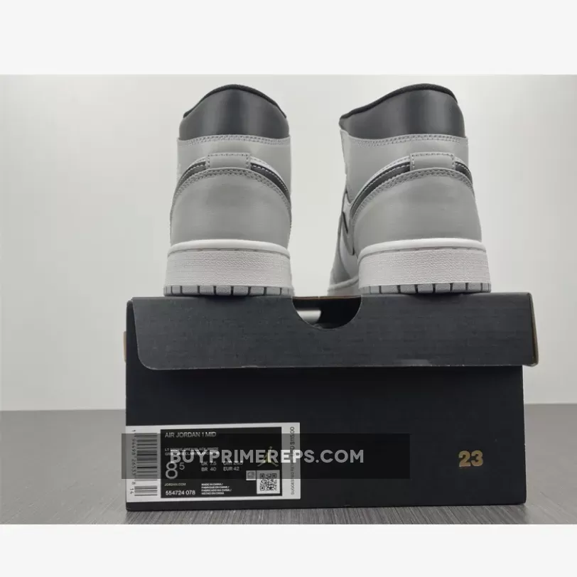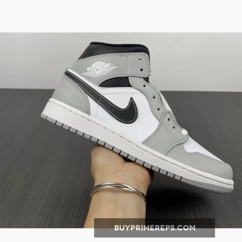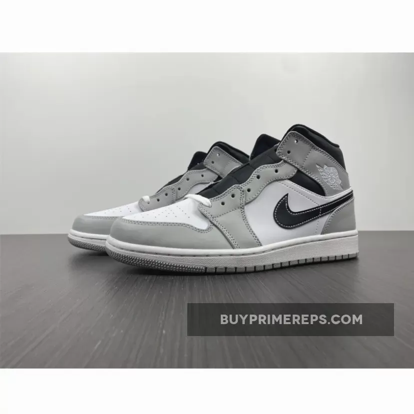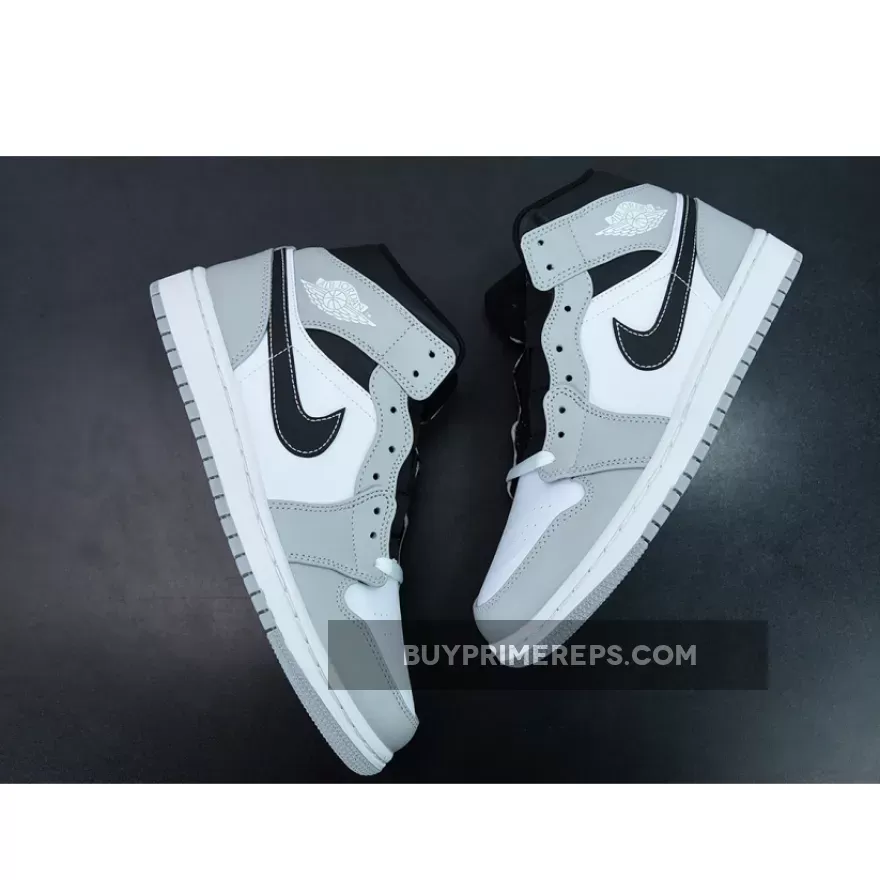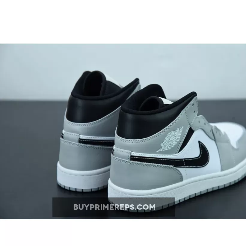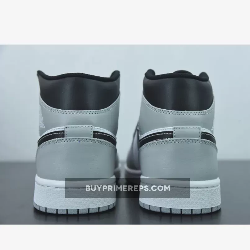 The midsole of the Air Jordan 1 Mid is kept clean and white, providing a nice balance to the darker tones of the upper. The outsole, on the other hand, features a Smoke Grey color that complements the overall greyscale look of the shoe. This combination of white and Smoke Grey creates a cohesive and stylish aesthetic.