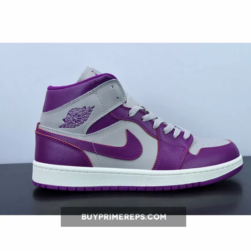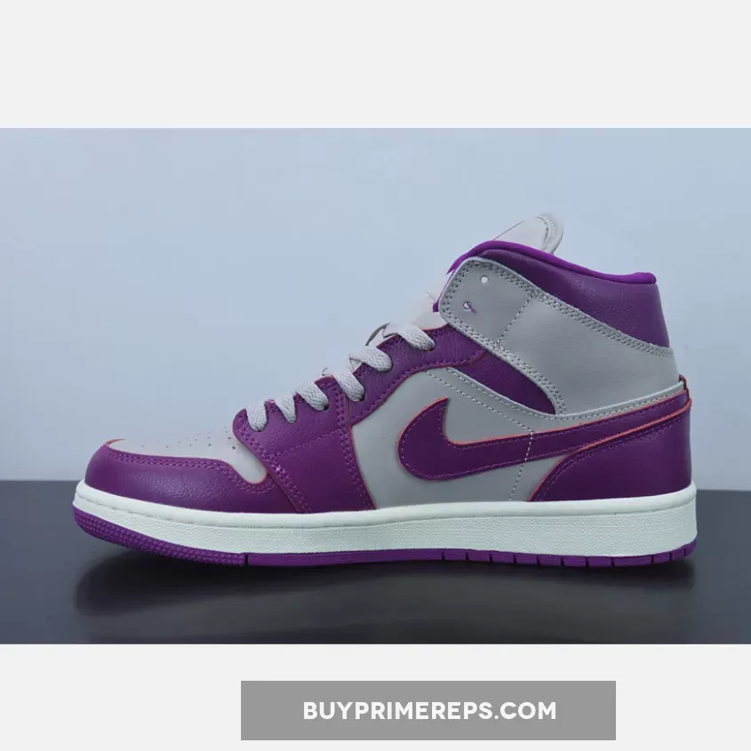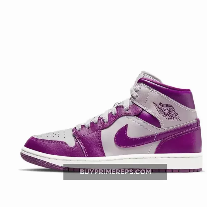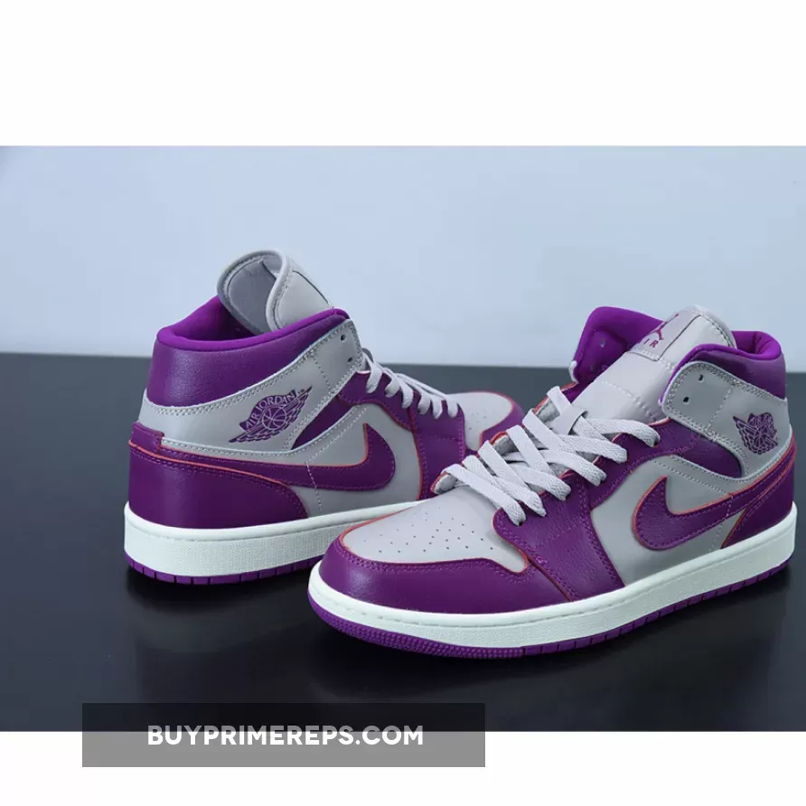The Air Jordan 1 Mid Magenta is a sneaker that has taken the sneaker world by storm. This mid-cut silhouette features a stunning colorway that combines two shades of purple to create a unique and eye-catching design. The upper of the shoe is constructed with a full leather material, giving it a premium look and feel. The base of the shoe is a smooth lavender shade of purple, while the overlays are done in a contrasting magenta color. This combination of colors gives the shoe a bold and vibrant appearance.