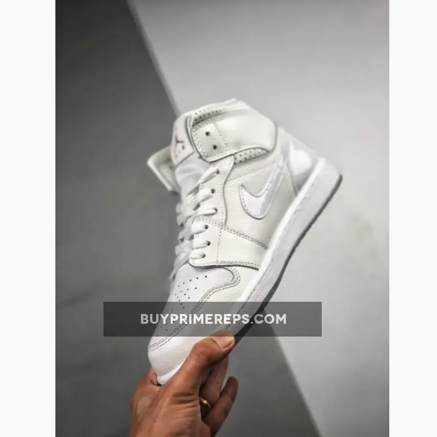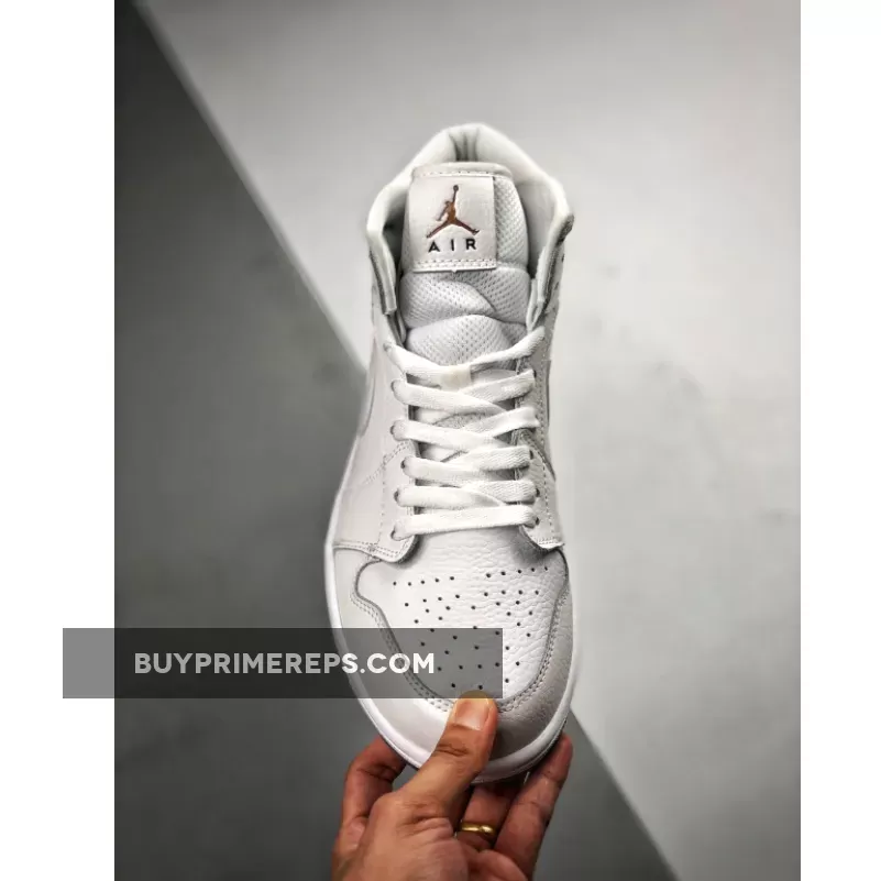 The design of the Air Jordan 1 Mid starts with a clean and classic white leather upper. The mid-top silhouette gives it a retro look that is both timeless and fashionable. The iconic Air Jordan wing motifs can be found on the sidewalls, adding a touch of black linear style to the overall design. The white Swooshes and Jumpman branding on the tongue complete the branding details on the shoe.