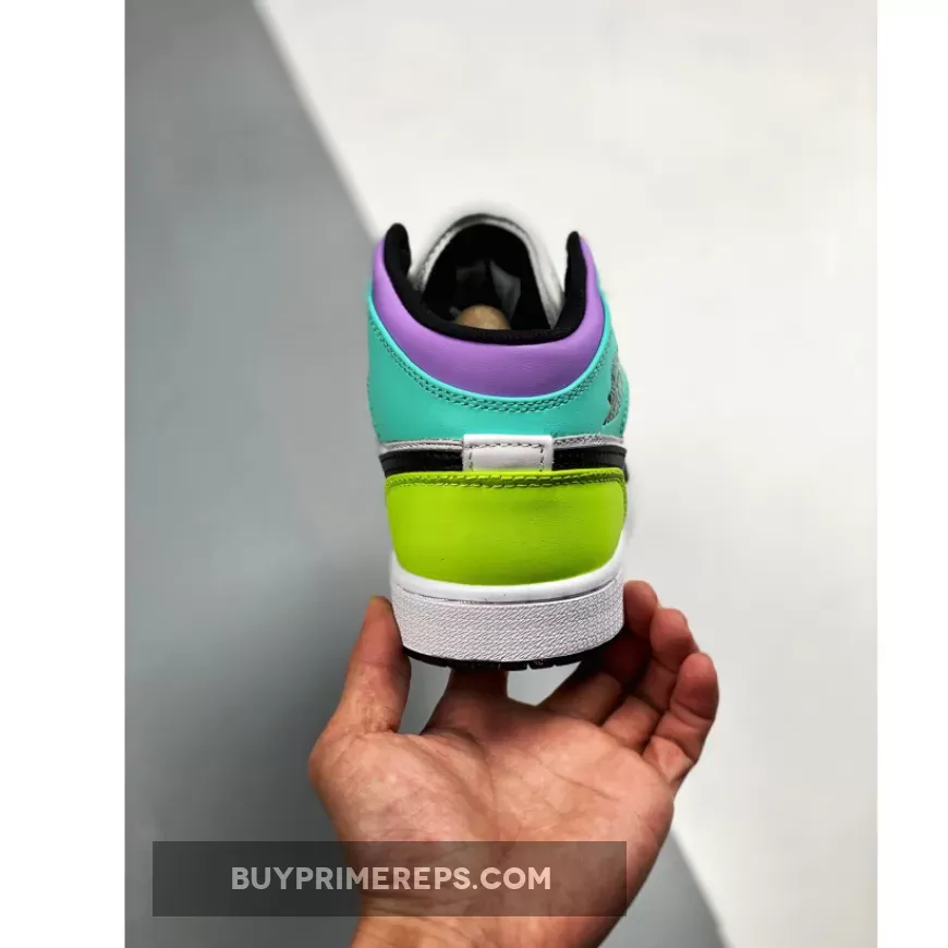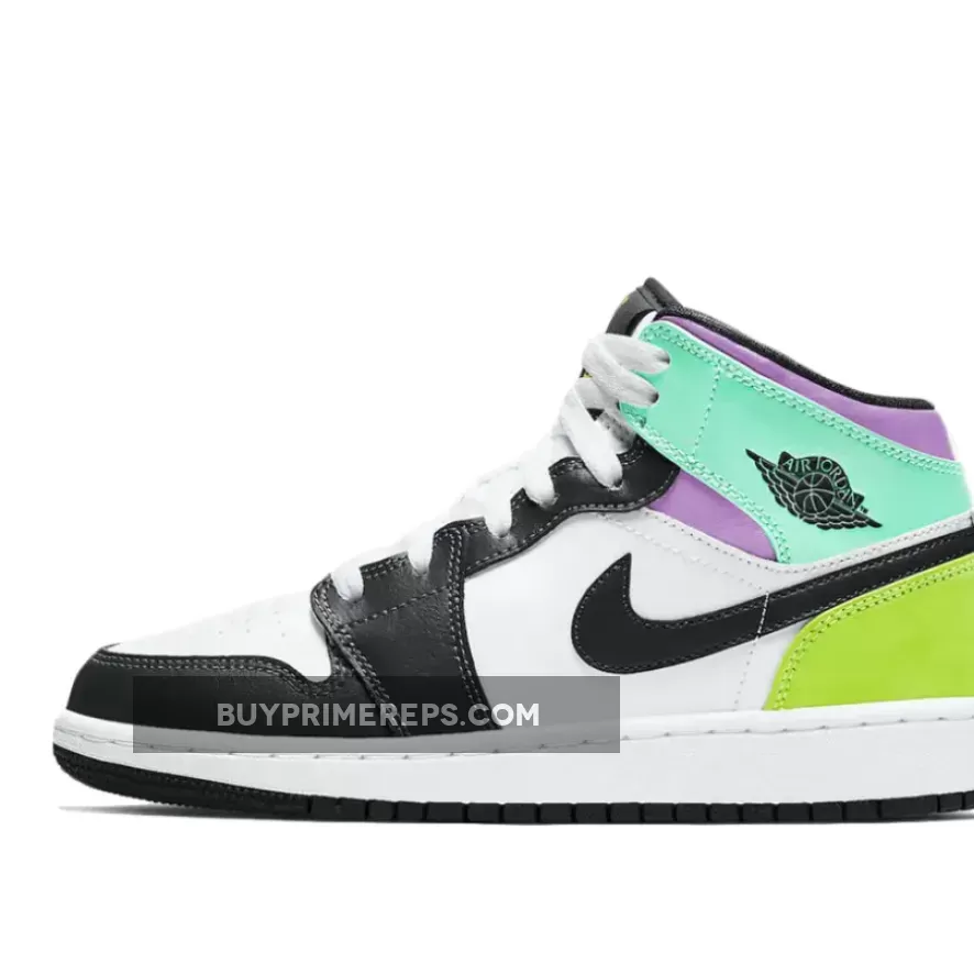 Constructed with high-quality materials, the Air Jordan 1 Mid GS Pastel Multi is designed to provide both style and comfort. The perforated toe box and side panels offer breathability, while the leather upper ensures durability. The midsole provides cushioning for all-day comfort, making this sneaker suitable for both casual wear and athletic activities.