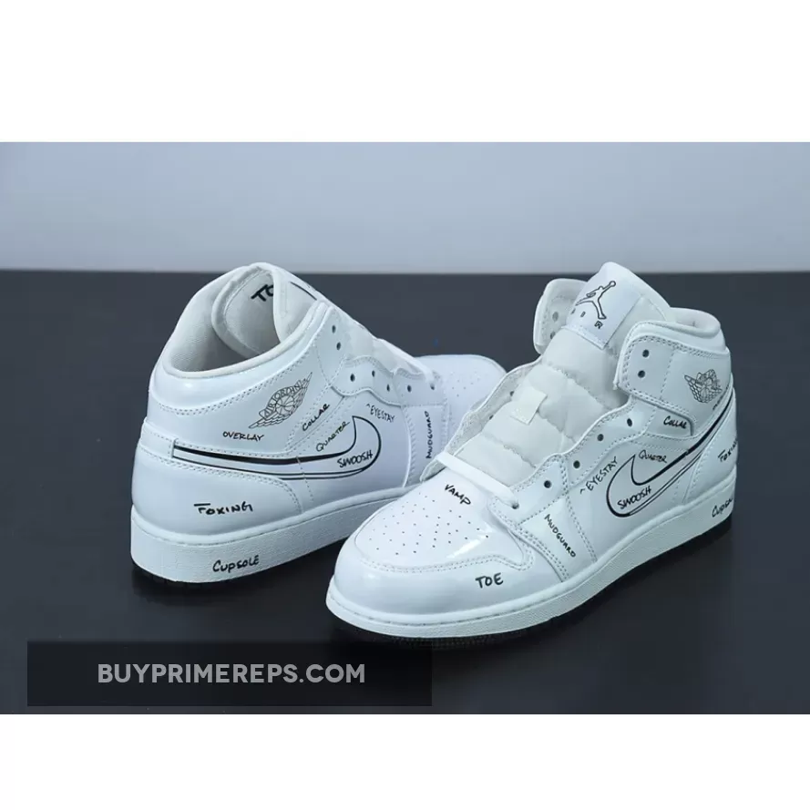 The Air Jordan 1 Mid GS Sneaker School is here to teach you a lesson in sneaker terminology. This unique pair of Air Jordans takes a clean and simple approach, allowing you to learn and identify the different parts of the shoe. With a smooth white leather upper, the design is sleek and minimalistic, making it the perfect canvas for the educational markings.