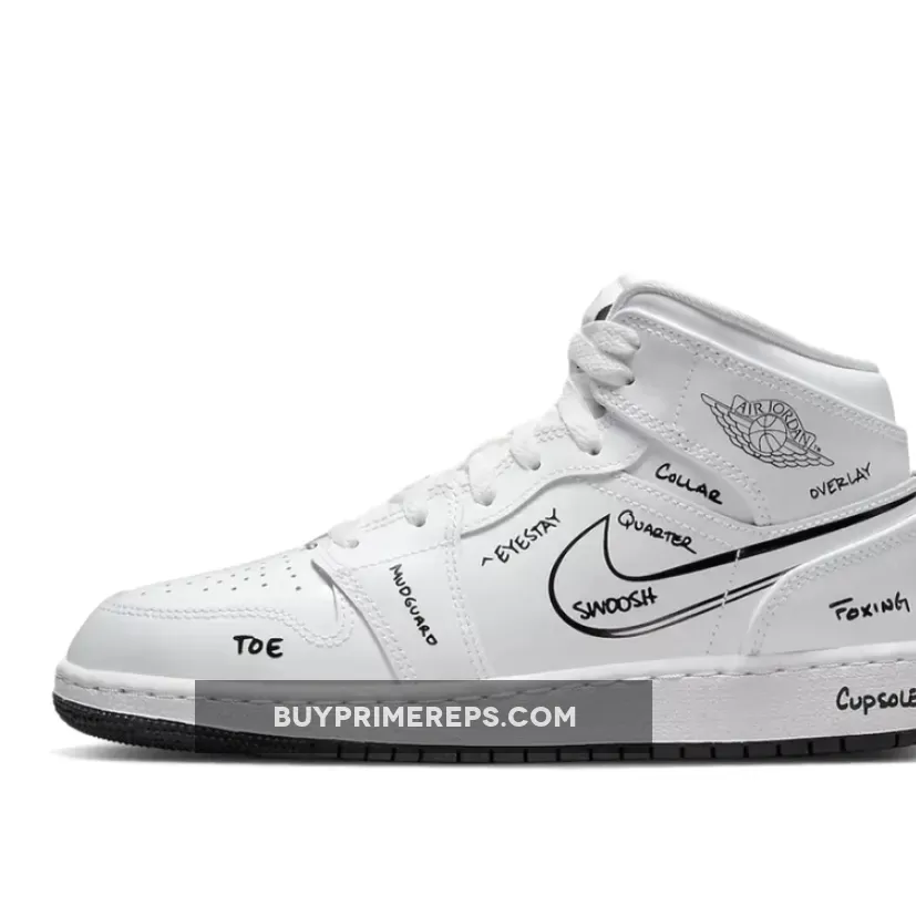 Clean and understated, the Air Jordan 1 Mid ‘Schematic’ offers a minimalist design with legible etchings for sneaker enthusiasts. Perfect blend of functional and stylish! #AJ1MidGS #SneakerSchool #EducationalDesign