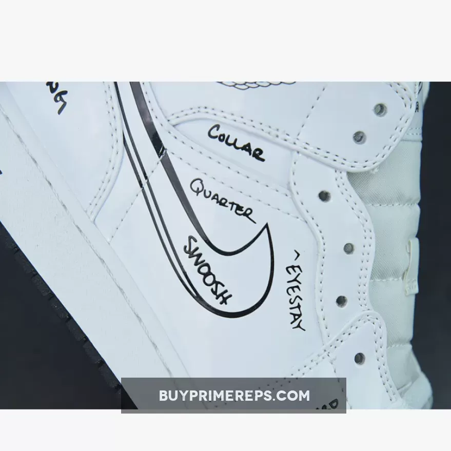 One of the most striking features of this sneaker is the handwritten font used to label each part of the shoe. It’s as if someone took a black permanent marker and carefully diagrammed the various components. From the toe to the collar, quarter, Swoosh, and cupsole, you’ll find black etchings that clearly indicate each element.