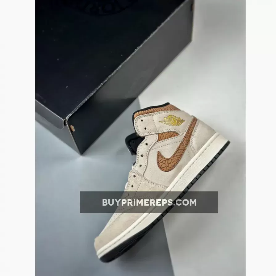 The Air Jordan 1 Mid SE Brown Elephant is designed to provide optimal performance on and off the court. The shoe features a padded collar and tongue, providing added comfort and support. The mid-top design offers ankle stability, making it suitable for athletic activities.