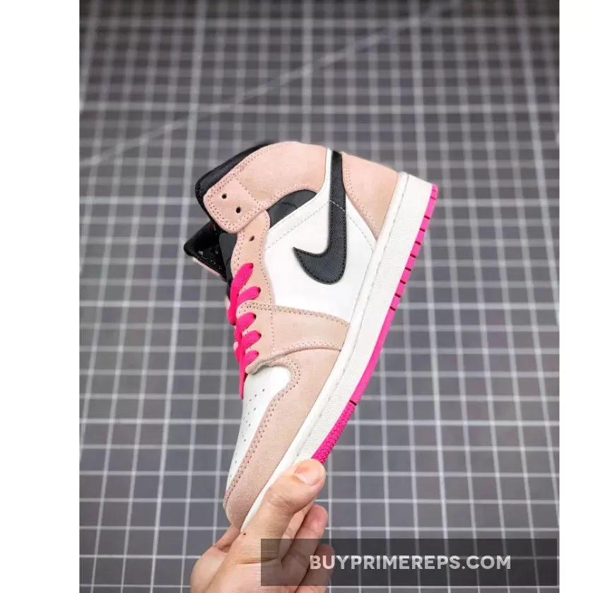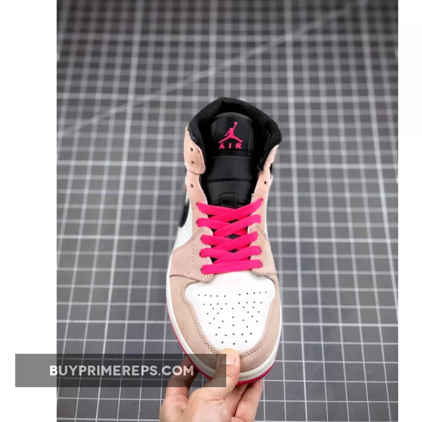 One of the standout features of the Air Jordan 1 Mid “Crimson Tint” is the use of Hyper Pink accents. The laces and outsole are both colored in a bold and vibrant shade of pink, creating a striking contrast against the white and Crimson Tint hues. The pink accents add a touch of femininity to the shoe, making it a great choice for women who want to make a statement with their footwear.