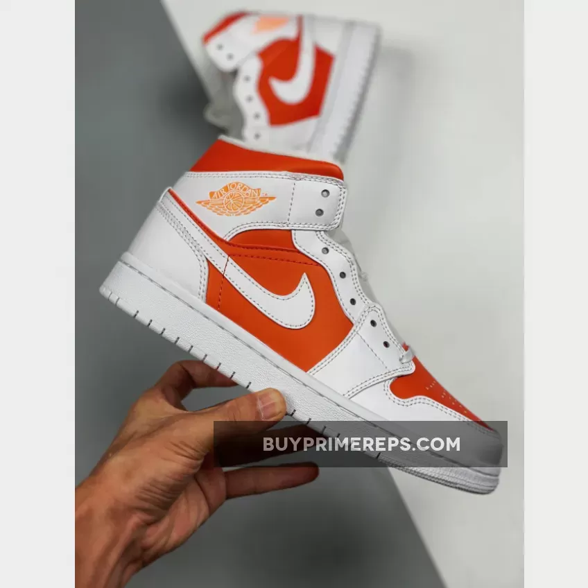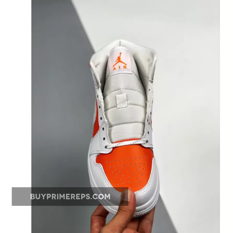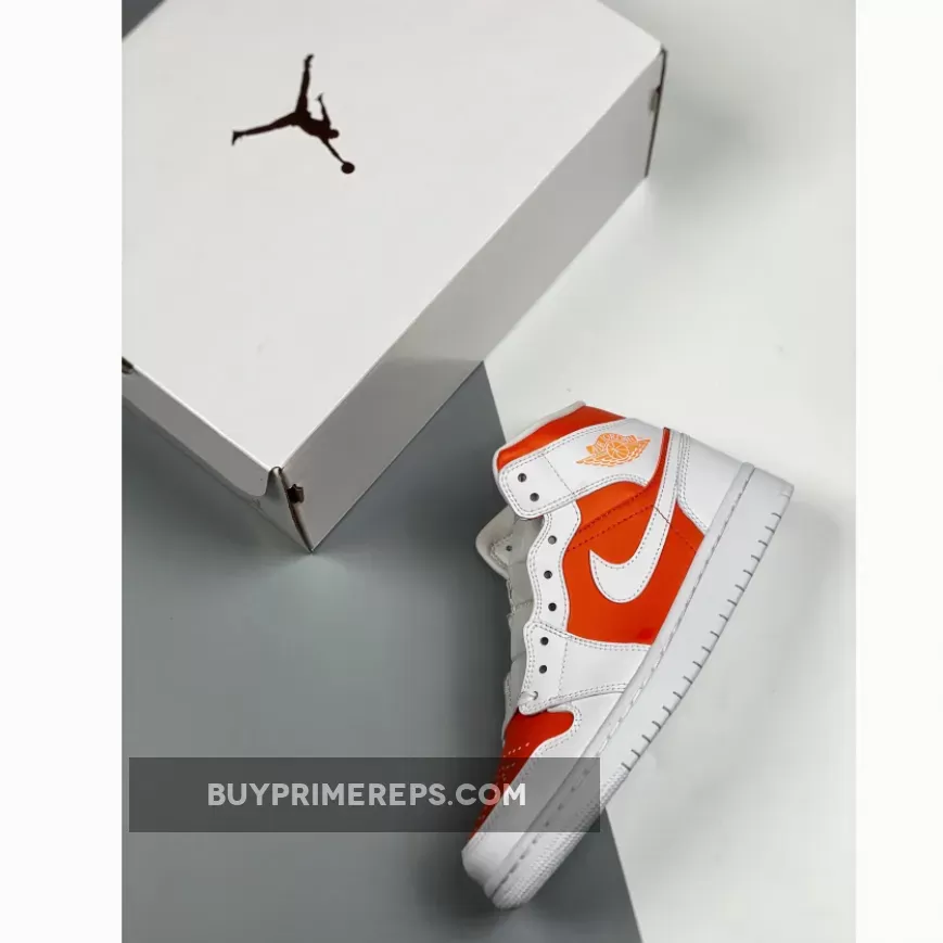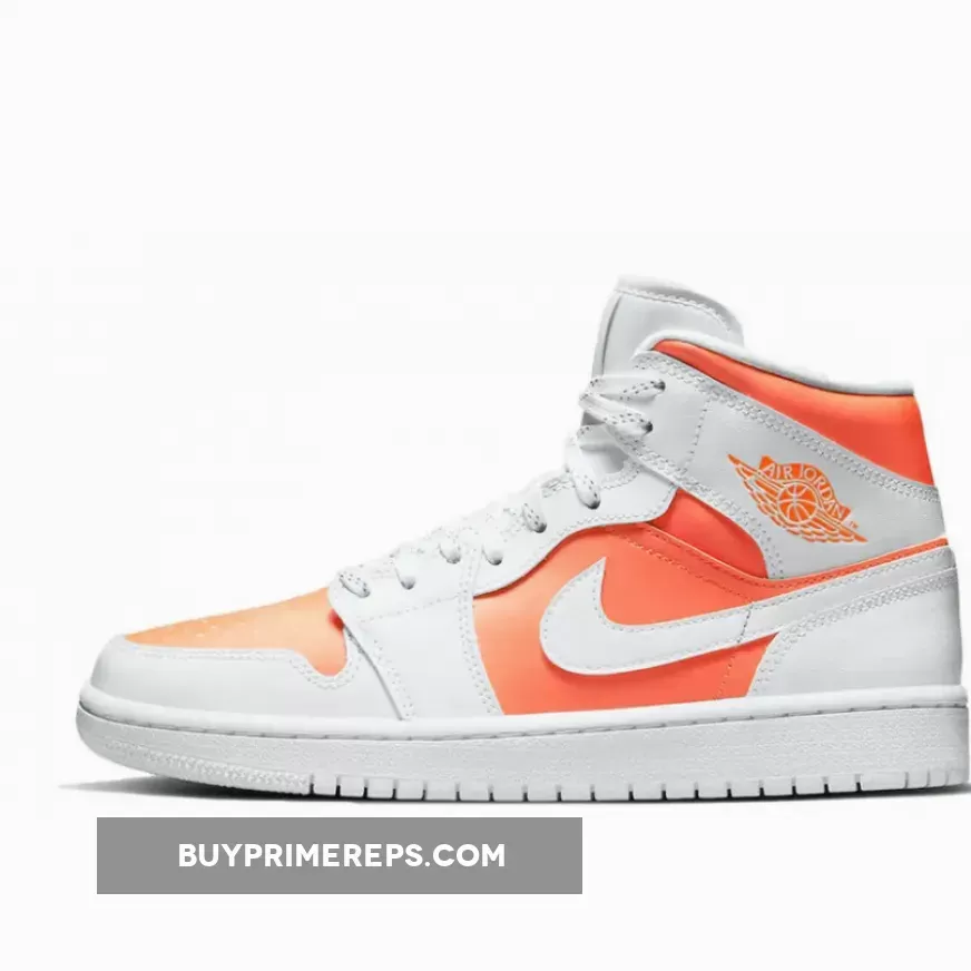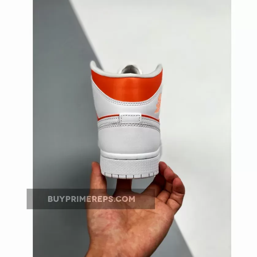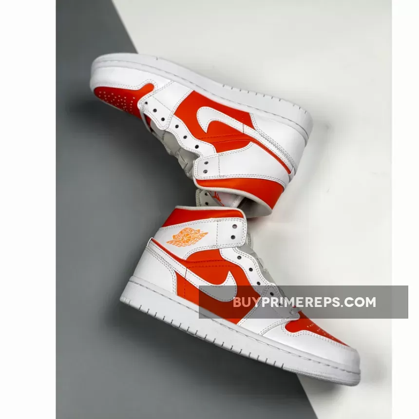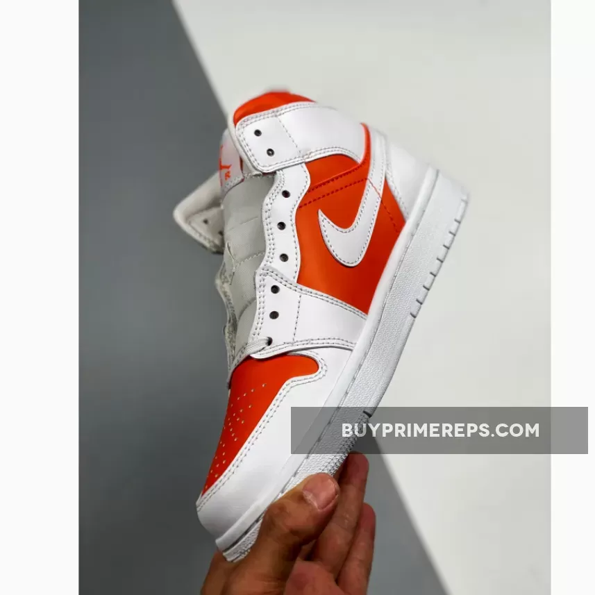 Constructed with a combination of smooth leather and white leather overlays, this Air Jordan 1 Mid SE has a clean and sleek look. The white overlays provide a nice contrast to the vibrant orange base, creating a visually appealing aesthetic. The Nike Swoosh logo is prominently displayed across the sidewalls, adding the signature touch that Jordan fans know and love.