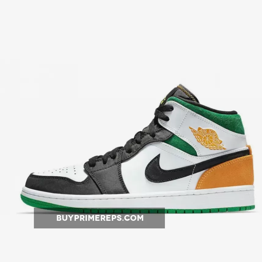 The Jordan 1 Mid SE Oakland draws inspiration from the iconic Oakland A’s colors, featuring a combination of green, white, black, and orange. The upper is constructed with a mix of canvas, suede, and synthetic materials, adding depth and texture to the design. The signature Nike Swoosh logo is prominently displayed on both the lateral and medial sides, showcasing the brand’s unmistakable style.