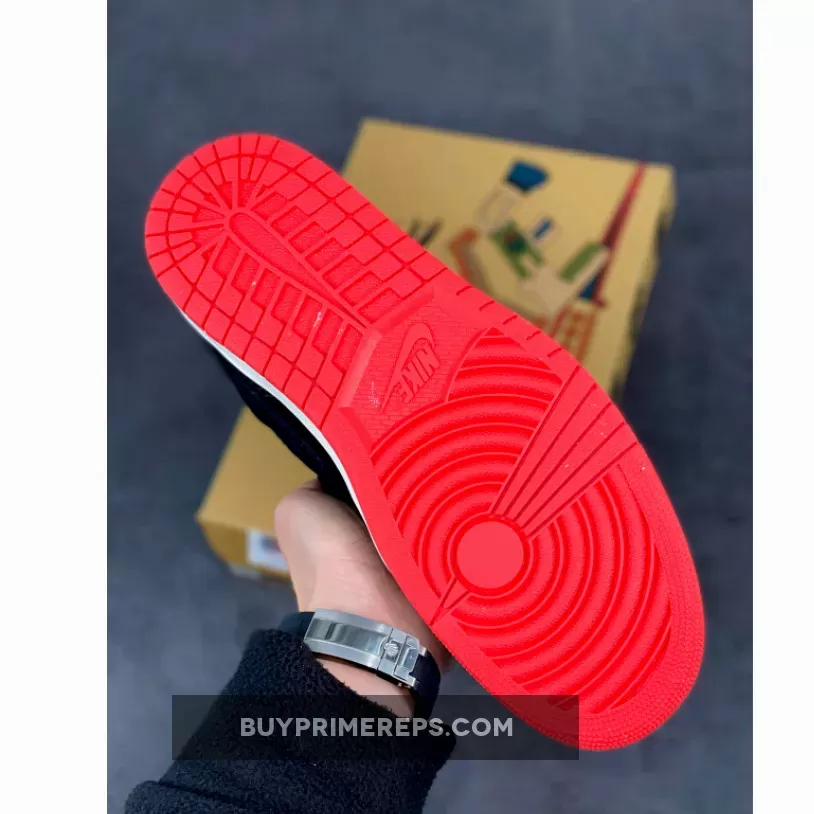 Completing the design is a vintage off-white midsole, which not only adds a retro flair but also provides exceptional comfort with its Air-sole cushioning. The crimson rubber outsole ties the entire look together, complementing the bold red accents found throughout the sneaker.