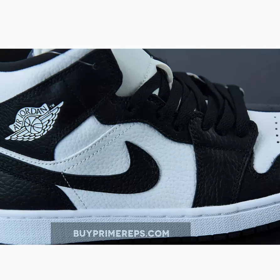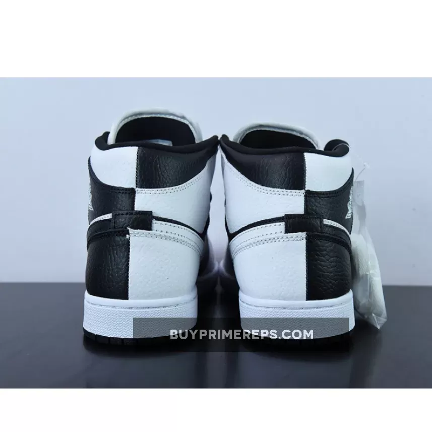 The Air Jordan 1 Mid Homage Black White reimagines the classic silhouette with a unique split-color design. This premium leather sneaker features a white base on one half and black on the other, adorned with contrasting overlays. The split theme extends to the tongue tag and collar flap, featuring a branded Jumpman logo on each.